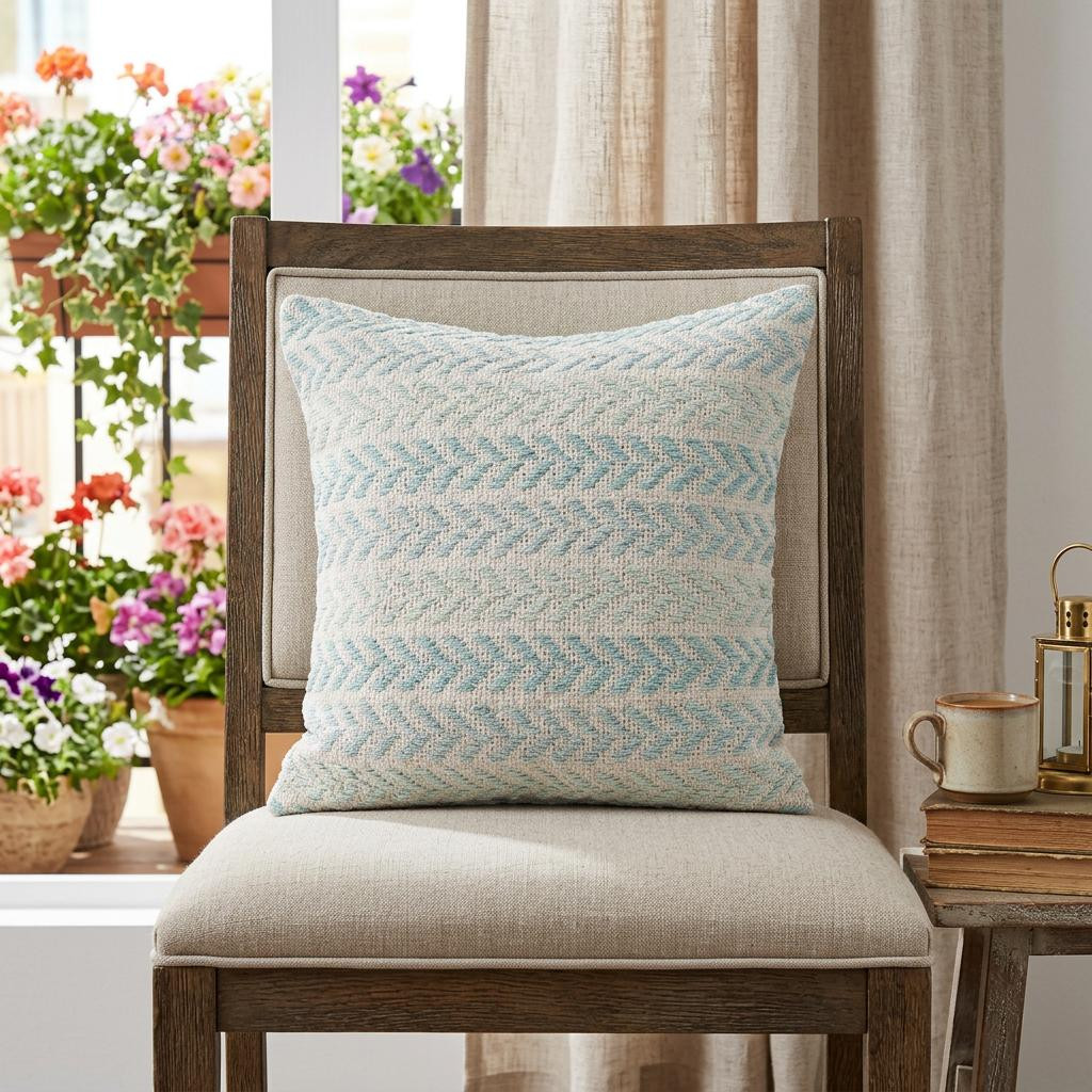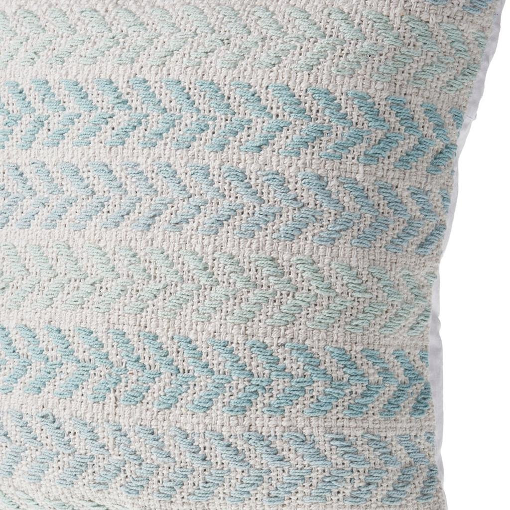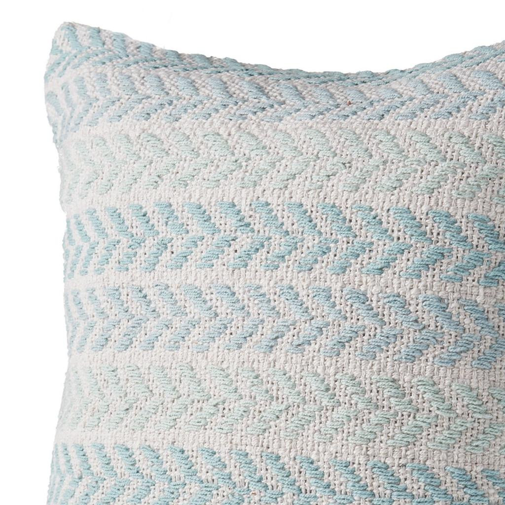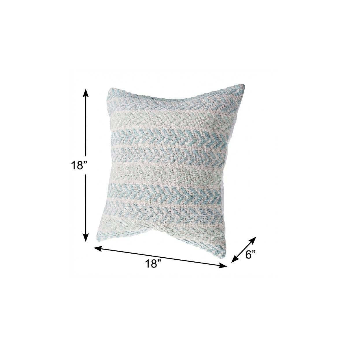 Bring a bit of fashion and zip to your space with this eye-catching and comfy 18-inch light blue and white chevron cotton throw pillow. This decorative pillow is made from high grade cotton that is durable and long lasting. Super soft and built to hold its shape, this polyfill-filled pillow is a great option. For anyone that loves to decorate or accent their space with color and texture. Decorative throw pillows not only add color and dimension to your space but can be comfy and supportive when you are lounging and cuddling as well. 18-inch h x 18-inch w x 6-inch d.