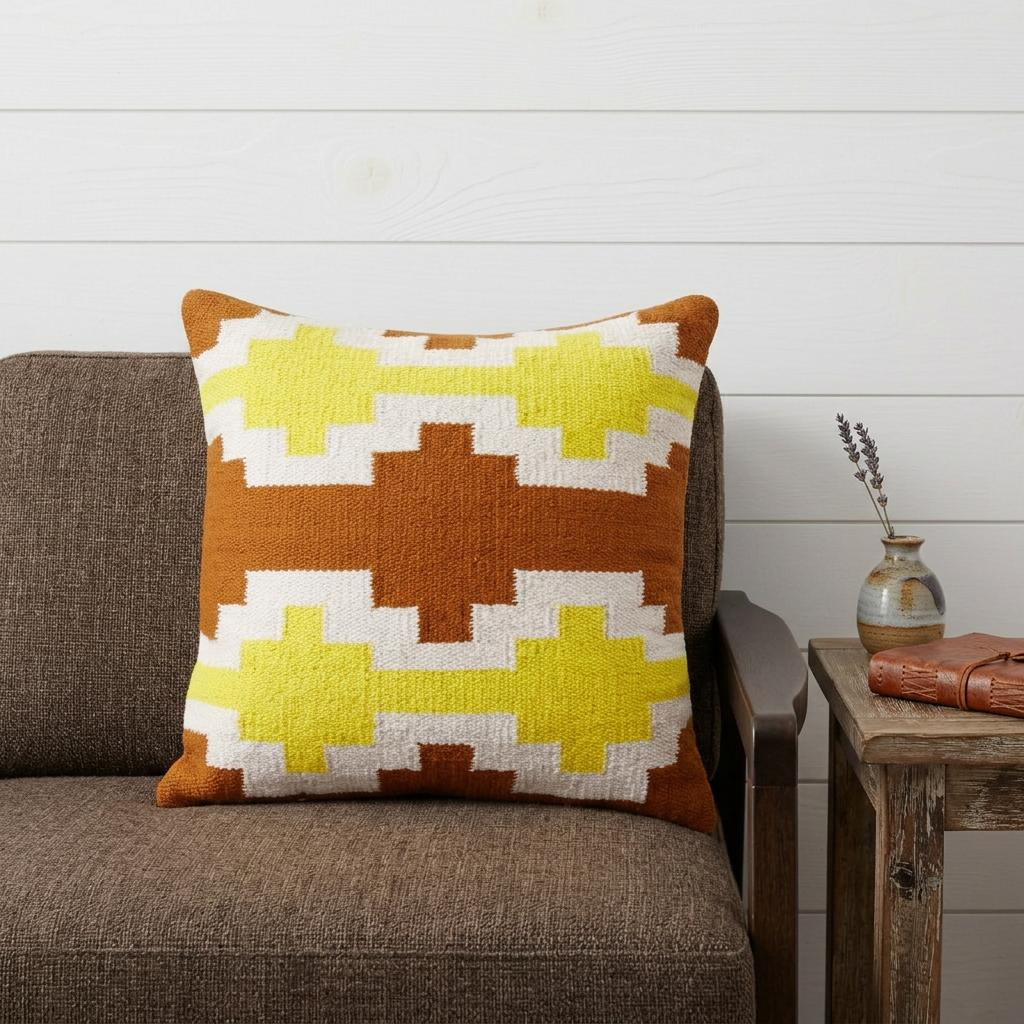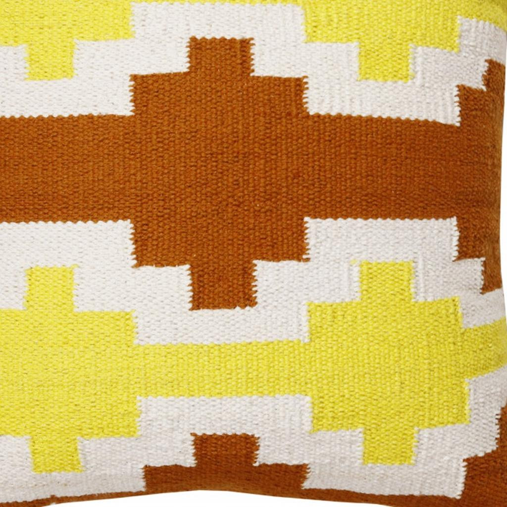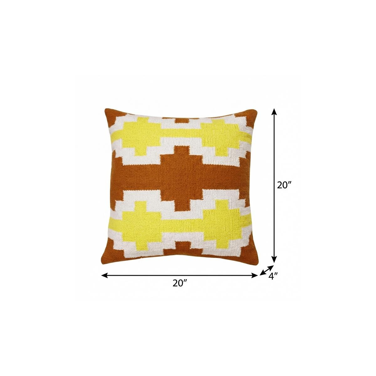 Bring a bit of fashion and zip to your space with this eye-catching and comfy 20" x 20" adobe orange yellow and white 100% cotton geometric zippered pillow. This adobe orange yellow and white colored decorative pillow is made from high grade 100% cotton that makes it super soft to the touch and long lasting. For anyone that loves to decorate or accent their space with color and texture. Decorative pillows are a great way to change up the look and feel of your space easily and quickly. 4" H x 20" W x 20" D