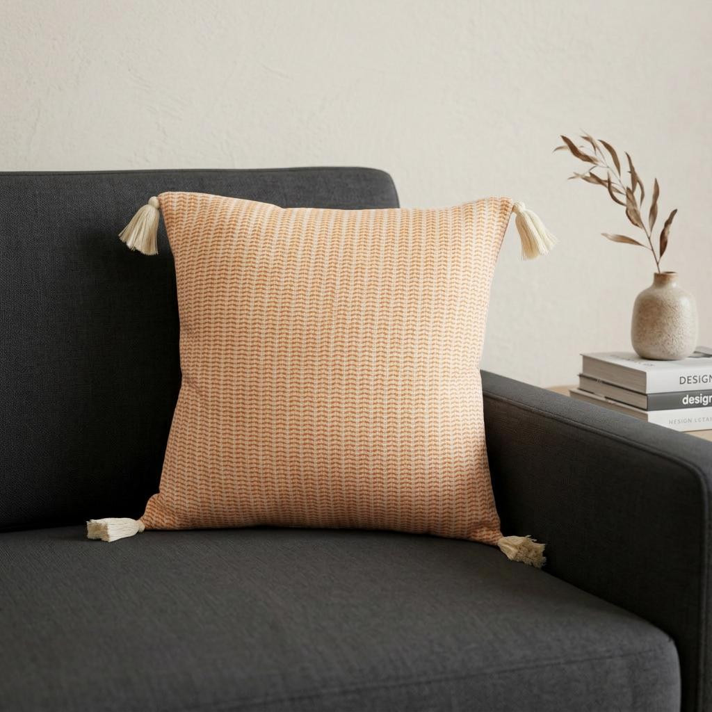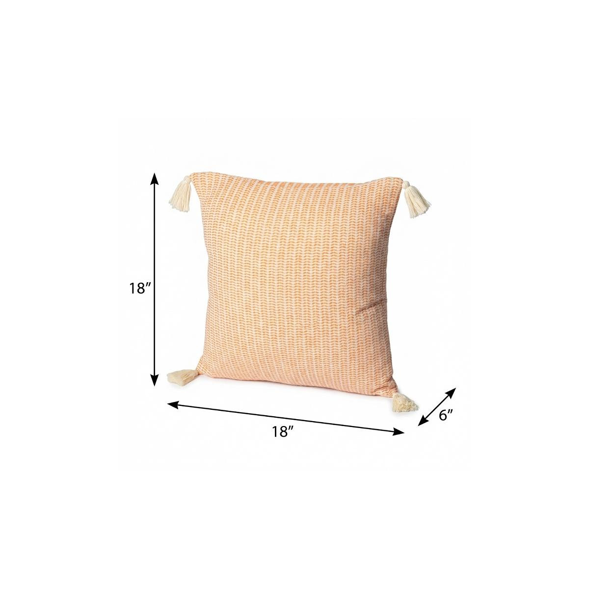 Bring a bit of fashion and zip to your space with this eye-catching and comfy 18" x 18" orange and ivory 100% cotton striped zippered pillow. This super soft decorative pillow is expertly made of high grade, long lasting 100% cotton in a orange and ivory coloration. Great to use on its own or mix with other decorations for the perfect look. A great decorative accessory for your favorite chair, to accent your sofa, or to use as part of your bed ensemble. 18" H x 18" W x 18" D