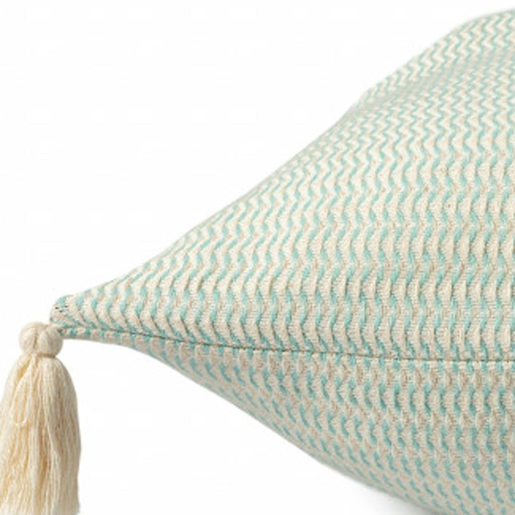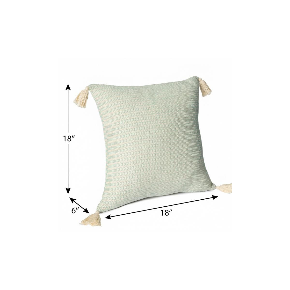 Bring a bit of fashion and zip to your space with this eye-catching and comfy 18" x 18" light turquoise and ivory 100% cotton striped zippered pillow. This light turquoise and ivory colored decorative pillow is made from high grade 100% cotton that makes it super soft to the touch and long lasting. Decorative throw pillows not only add color and dimension to your space but can be comfy and supportive when you are lounging and cuddling as well. Decorative pillows are a great way to change up the look and feel of your space easily and quickly. 18" H x 18" W x 18" D