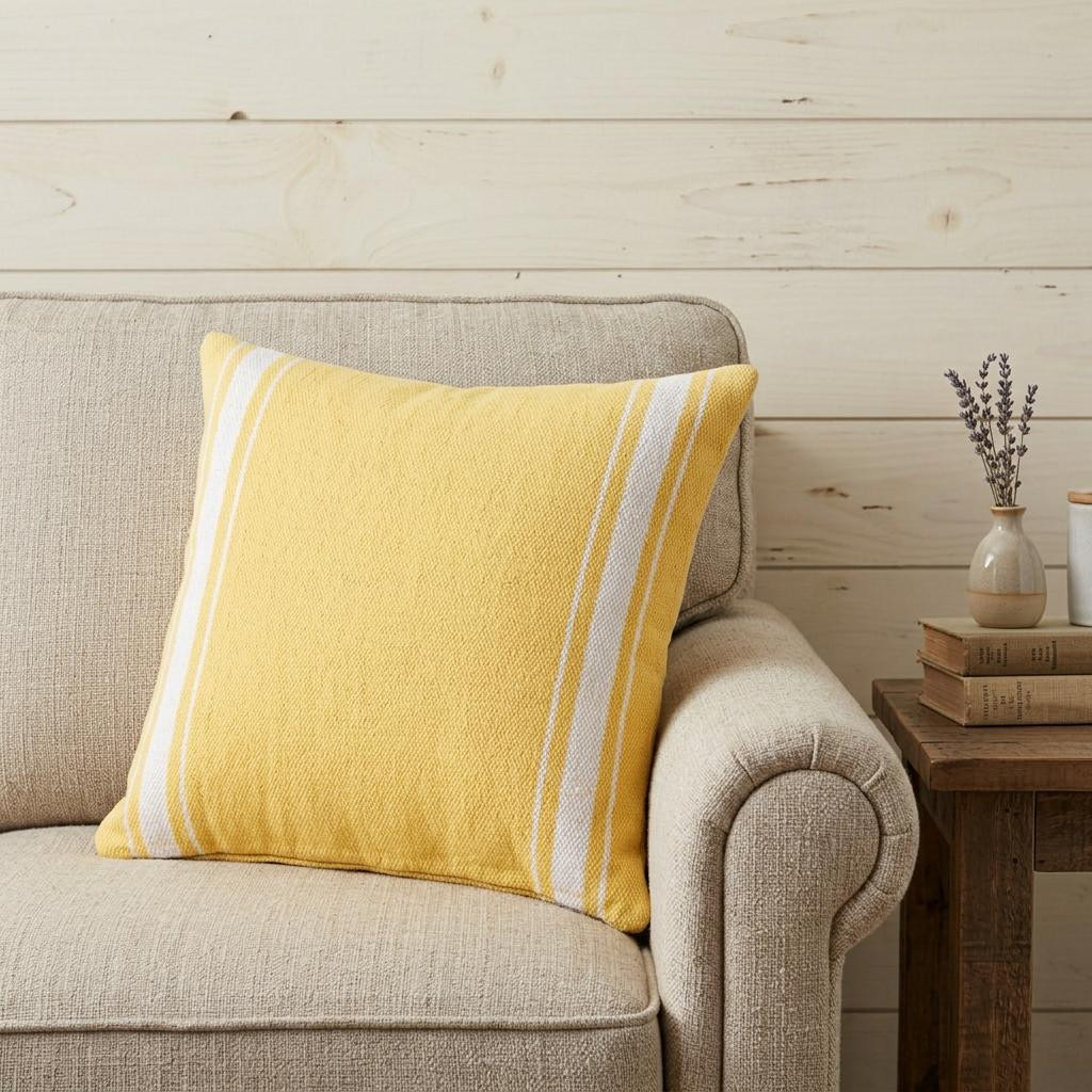 The perfect complement to your sofa, favorite chair, or bed, this 20" x 20" yellow and white 100% cotton geometric zippered pillow is a great decorative accent. Soft and textural yellow and white 100% cotton has been used to make this pillow look and feel like a real treasure. For anyone that loves to decorate or accent their space with color and texture. A great decorative accessory for your favorite chair, to accent your sofa, or to use as part of your bed ensemble. 4" H x 20" W x 20" D