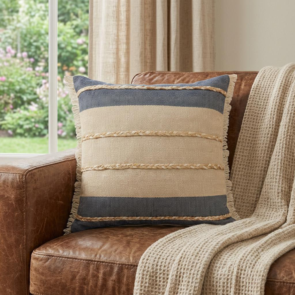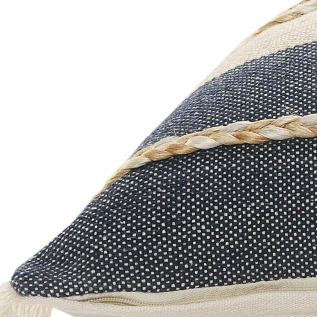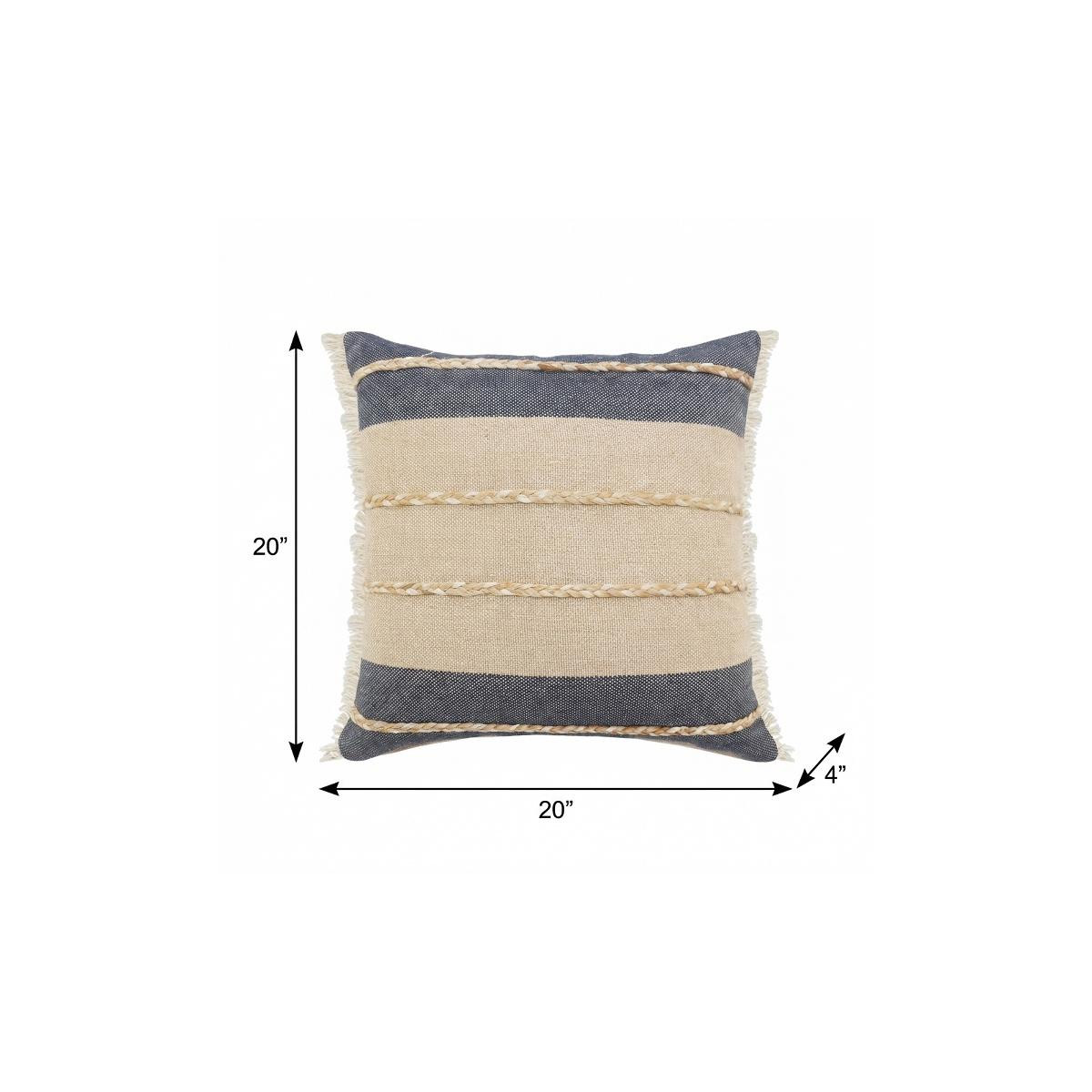 Unique and decorative, this comfortable 20" x 20" denim blue tan and taupe jute coastal zippered pillow will leave a lasting impression. This soft and durable decorative pillow is expertly made of high grade, long lasting jute in a denim blue tan and taupe coloration. For anyone that loves to decorate or accent their space with color and texture. Decorative pillows are a great way to change up the look and feel of your space easily and quickly. 4" H x 20" W x 20" D