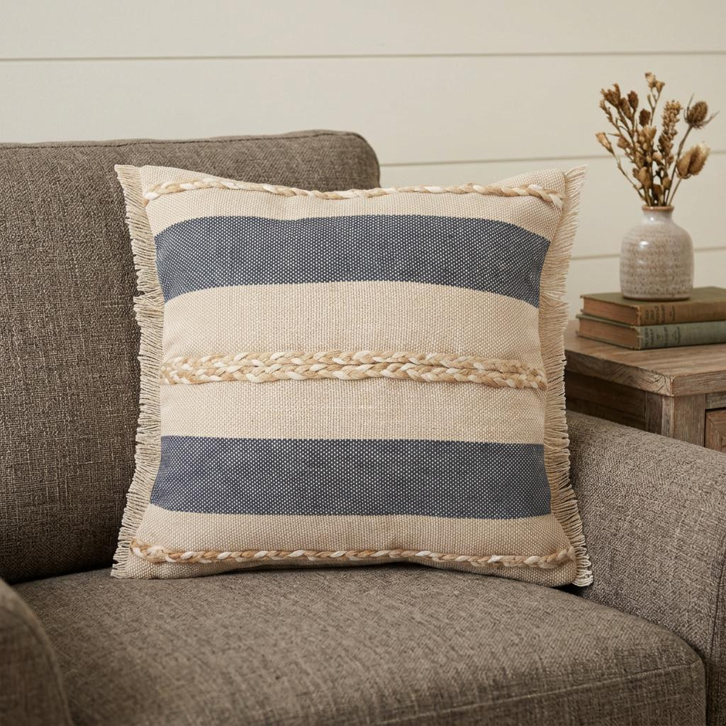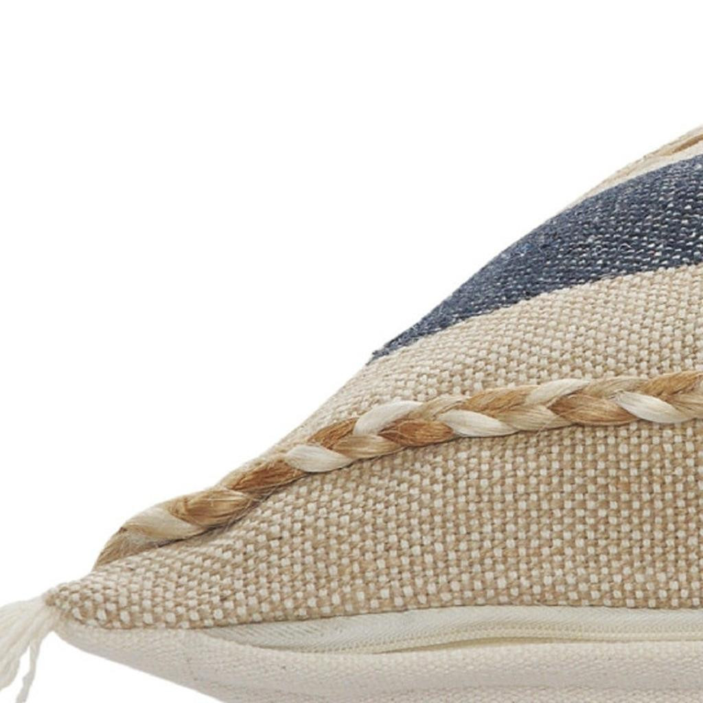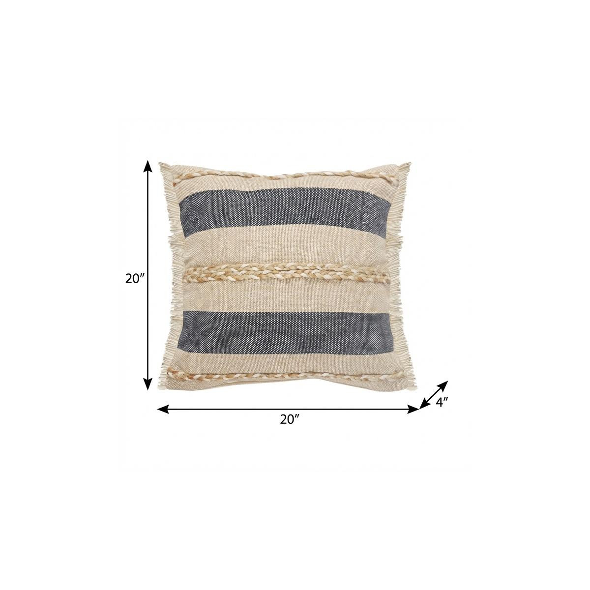 Add an air of fashion to your room and rejuvenate the space with this cute and fashionable 20" x 20" denim blue tan and taupe jute coastal zippered pillow. This denim blue tan and taupe hued piece represents quality construction, expertly made from durable jute that is not only long lasting but soft to the touch as well. For anyone that loves to decorate or accent their space with color and texture. Decorative pillows are a great way to change up the look and feel of your space easily and quickly. 4" H x 20" W x 20" D