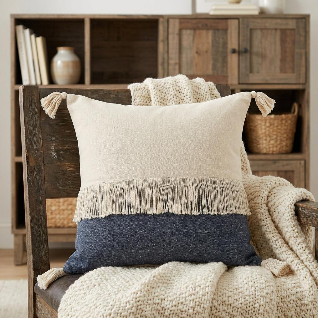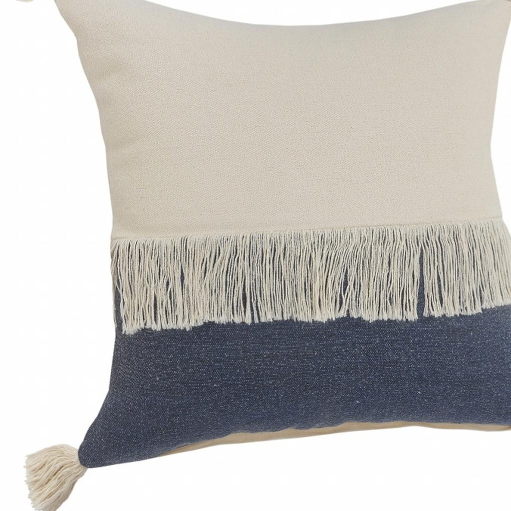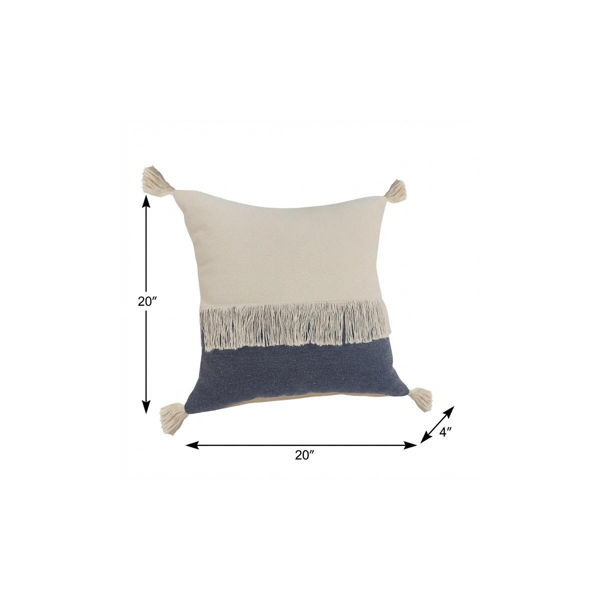 Add an air of fashion to your room and rejuvenate the space with this cute and fashionable 20" x 20" denim blue and off-white 100% cotton zippered pillow. Soft and textural denim blue and off-white 100% cotton has been used to make this pillow look and feel like a real treasure. For anyone that loves to decorate or accent their space with color and texture. A great decorative accessory for your favorite chair, to accent your sofa, or to use as part of your bed ensemble. 4" H x 20" W x 20" D