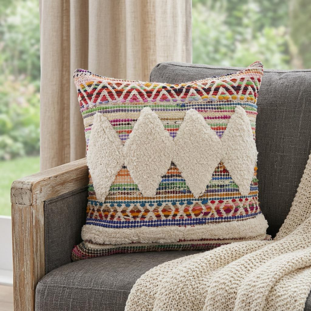 Bring a bit of fashion and zip to your space with this eye-catching and comfy 18-inch blue and white throw pillow. The blue and white coloring of the extremely durable and long lasting cotton will add dimension and texture to your space. Super soft and built to hold its shape, this polyfill-filled pillow is a great option. Decorative pillows are a great way to change up the look and feel of your space easily and quickly. A great decorative accessory to add color and dimension to your favorite chair, accent your sofa, or to use as part of your bed ensemble. 18-inch h x 18-inch w x 6-inch d.