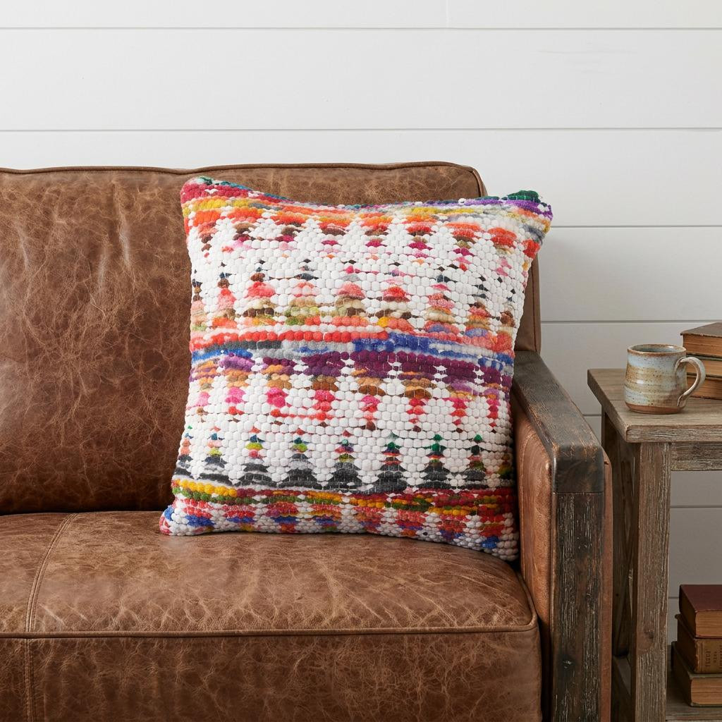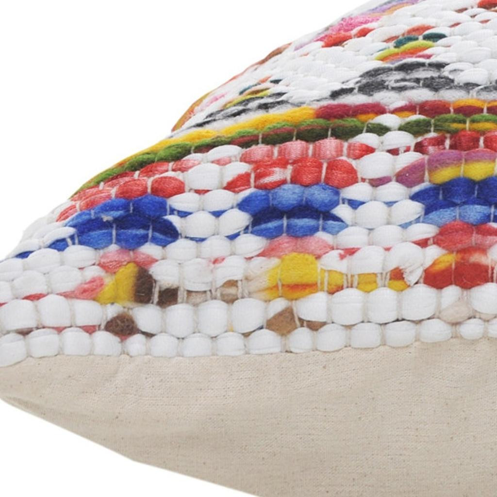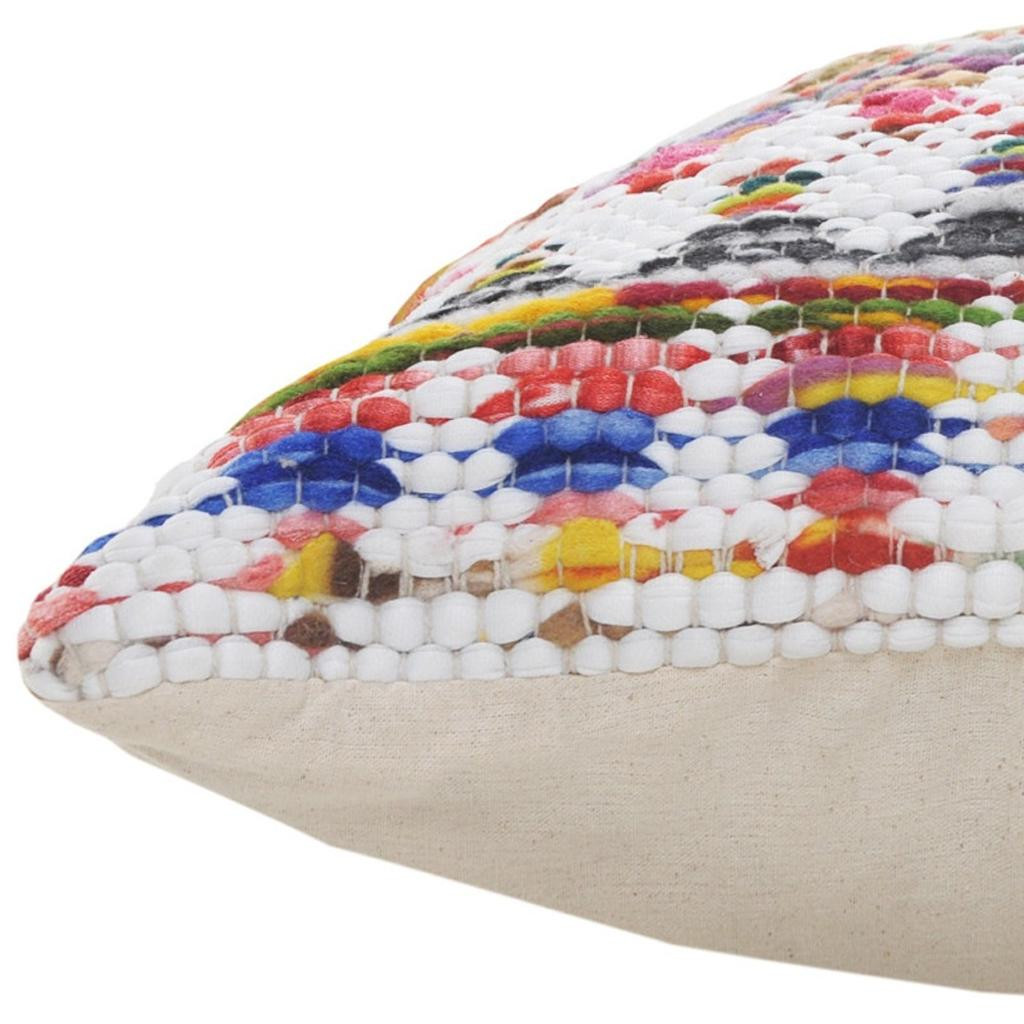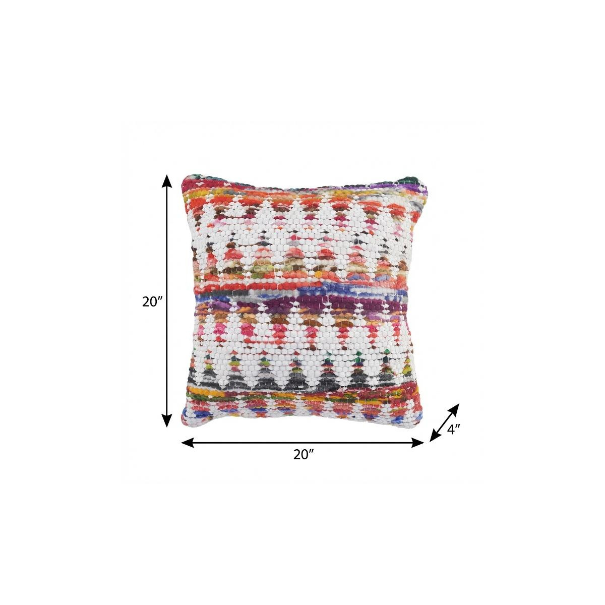 Unique and decorative, this comfortable 20" x 20" white red green blue yellow and orange 100% cotton geometric zippered pillow will leave a lasting impression. This super soft decorative pillow is expertly made of high grade, long lasting 100% cotton in a white red green blue yellow and orange coloration. Decorative throw pillows not only add color and dimension to your space but can be comfy and supportive when you are lounging and cuddling as well. Decorative pillows are a great way to change up the look and feel of your space easily and quickly. 4" H x 20" W x 20" D
