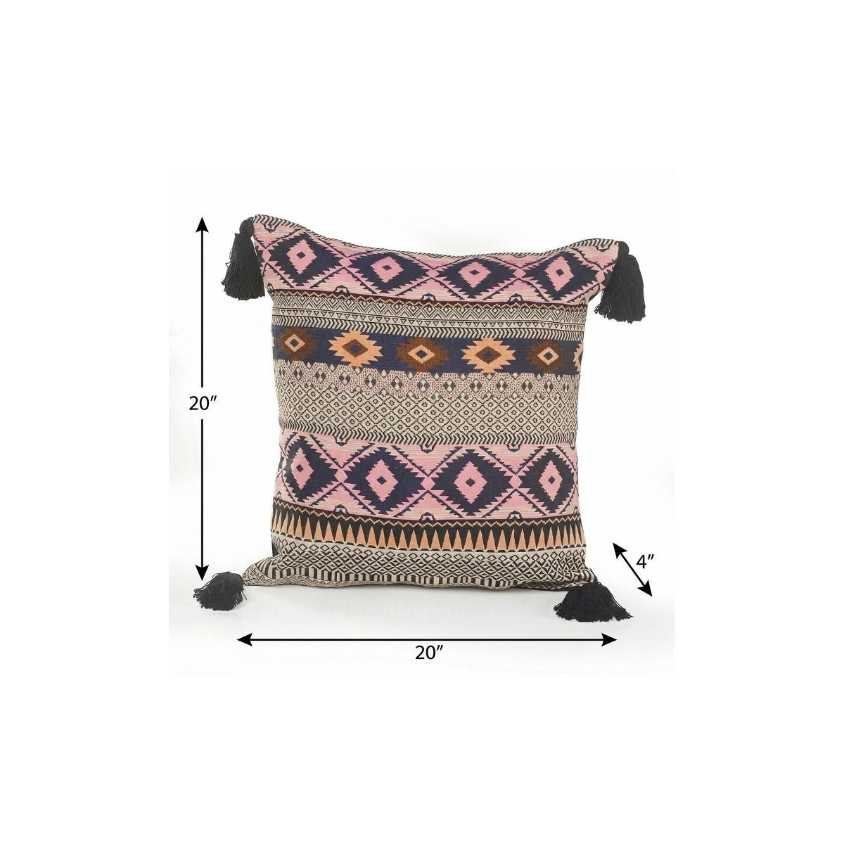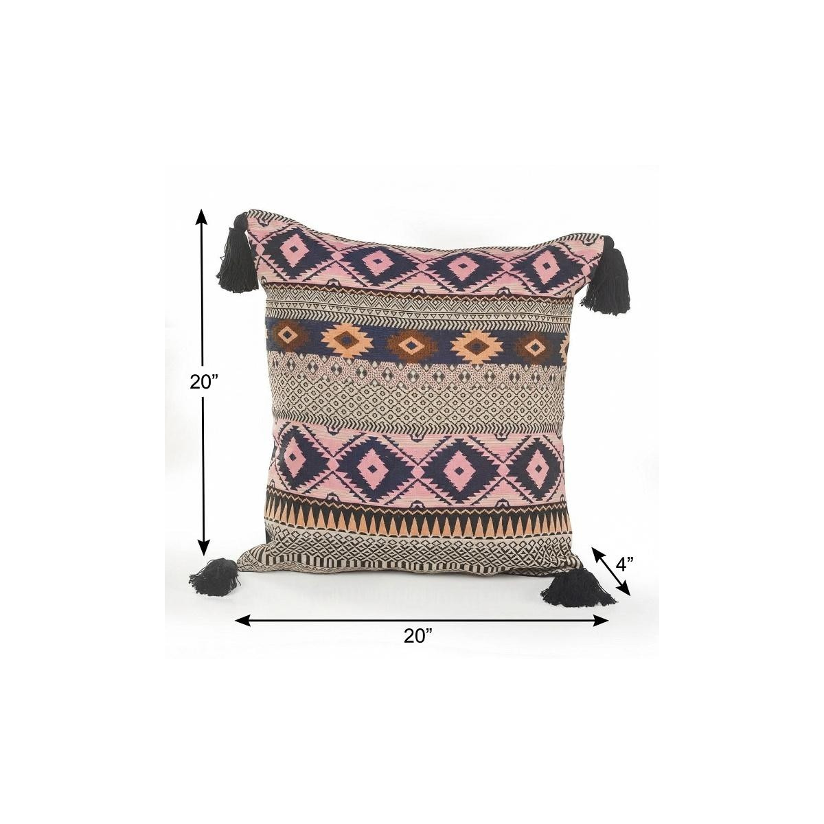 The 20-inch black and yellow throw pillow with tassels is the perfect decorative accessory for your home. This black and yellow hued piece represents quality construction, expertly made from durable cotton that is not only long lasting but soft to the touch as well. Charming decorative tassels give this design texture along with a hand-crafted look and feel. This soft polyfill filled pillow not only is decorative but made to be comfy and cozy all day long. Decorative pillows are a great way to change up the look and feel of your space easily and quickly. A great decorative accessory to add color and dimension to your favorite chair, accent your sofa, or to use as part of your bed ensemble. 20-inch h x 20-inch w x 4-inch d.