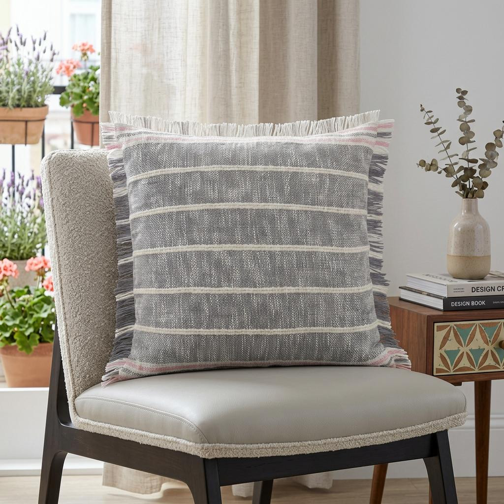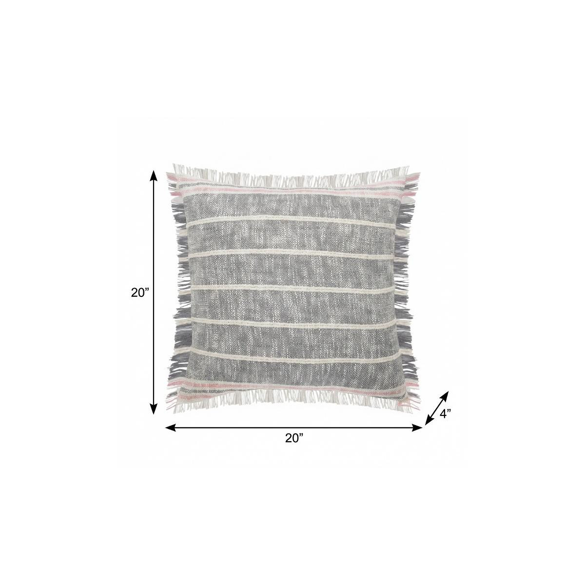 Add an air of fashion to your room and rejuvenate the space with this cute and fashionable 20" x 20" gray white and pink 100% cotton striped zippered pillow. This gray white and pink hued piece represents quality construction, expertly made from premium 100% cotton that is not only long lasting but super soft to the touch as well. For anyone that loves to decorate or accent their space with color and texture. A great decorative accessory for your favorite chair, to accent your sofa, or to use as part of your bed ensemble. 4" H x 20" W x 20" D