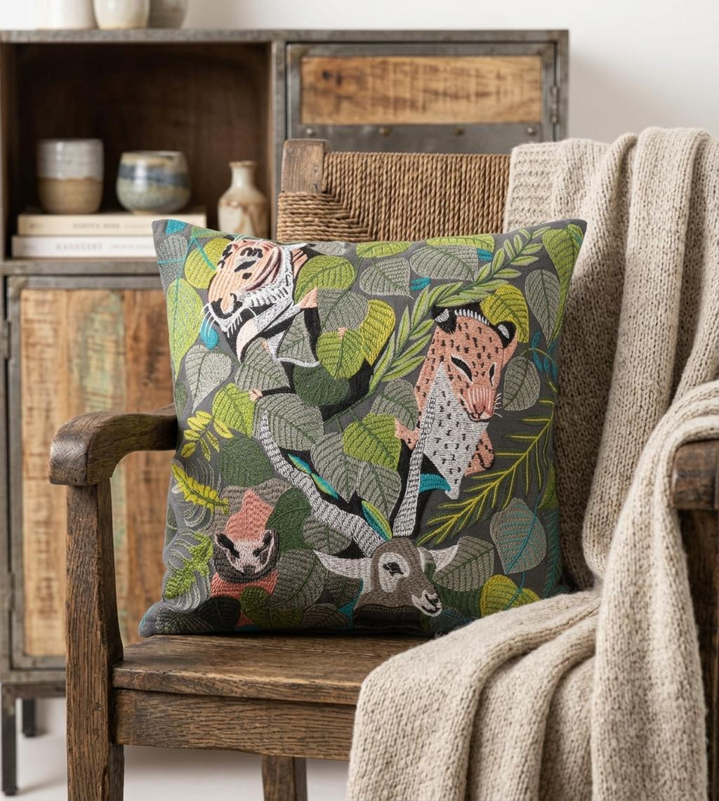 Add an air of fashion to your room and rejuvenate the space with this cute and fashionable 20" x 20" gray salmon and green 100% cotton animal print zippered pillow. Soft and textural gray salmon and green 100% cotton has been used to make this pillow look and feel like a real treasure. Decorative throw pillows not only add color and dimension to your space but can be comfy and supportive when you are lounging and cuddling as well. Decorative pillows are a great way to change up the look and feel of your space easily and quickly. 4" H x 20" W x 20" D