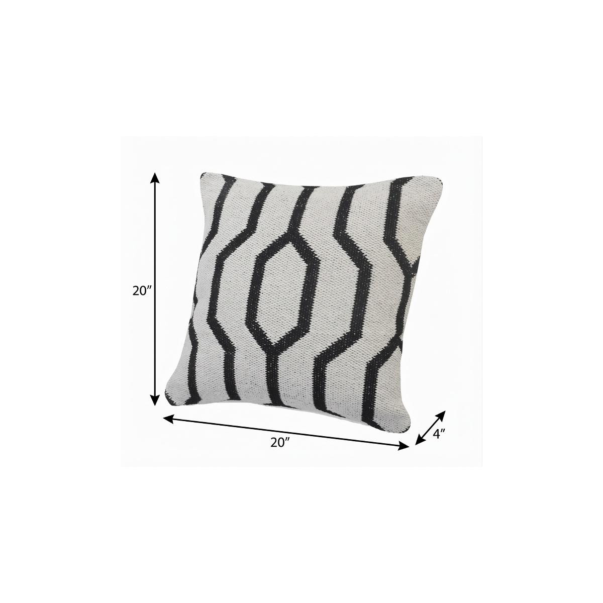 The perfect complement to your sofa, favorite chair, or bed, this 20-inch black and white cotton geometric throw pillow is a great decorative accent. This soft and durable decorative pillow is expertly made of high grade, long lasting cotton in a black and white coloration. Super soft and built to hold its shape, this polyfill-filled pillow is a great option. For anyone that loves to decorate or accent their space with color and texture. Decorative throw pillows not only add color and dimension to your space but can be comfy and supportive when you are lounging and cuddling as well. 20-inch h x 20-inch w x 4-inch d.