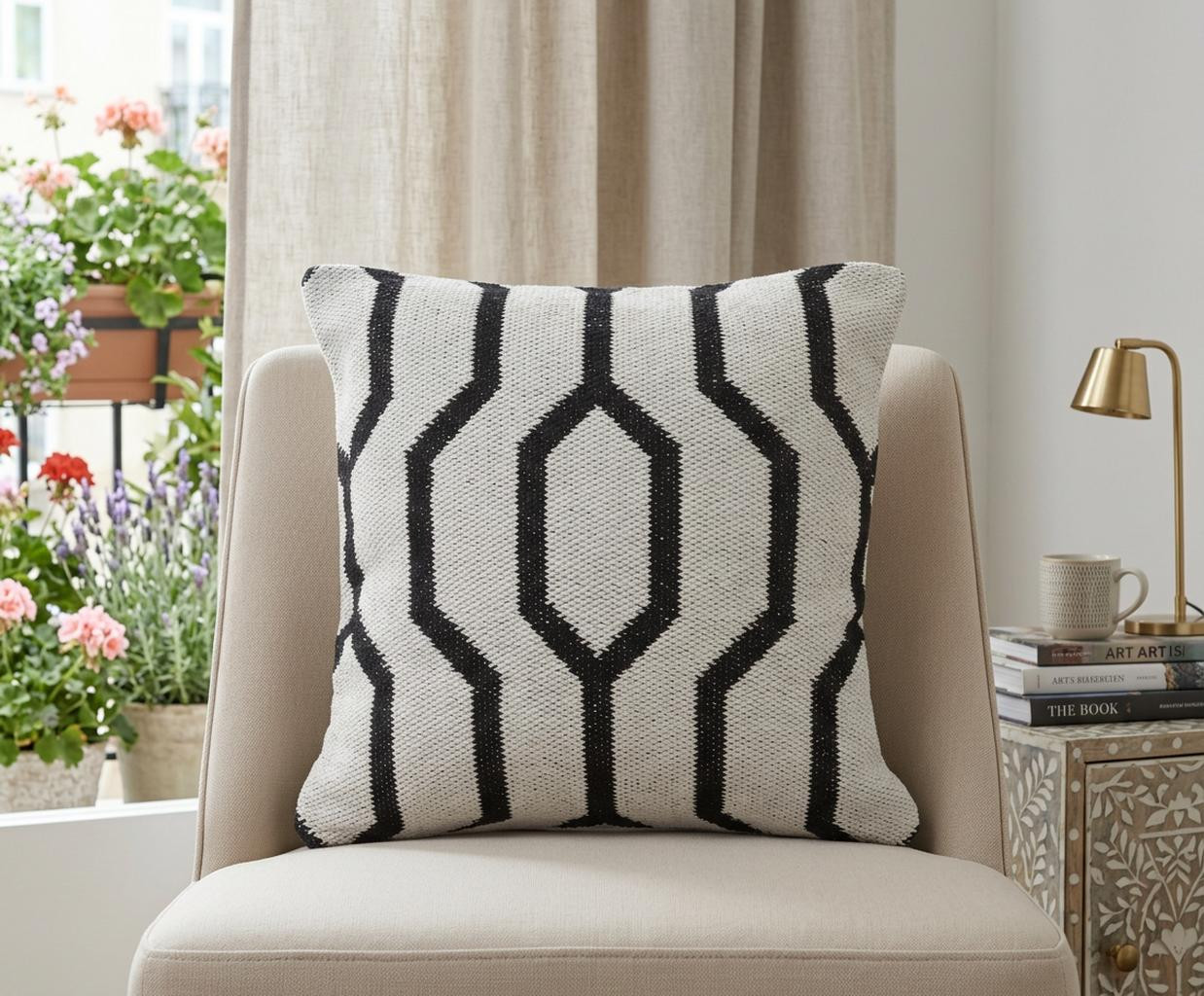 white cotton geometric throw pillow, cotton geometric throw pillow, geometric throw pillow, black white cotton geometric throw, 20" black white cotton geometric |