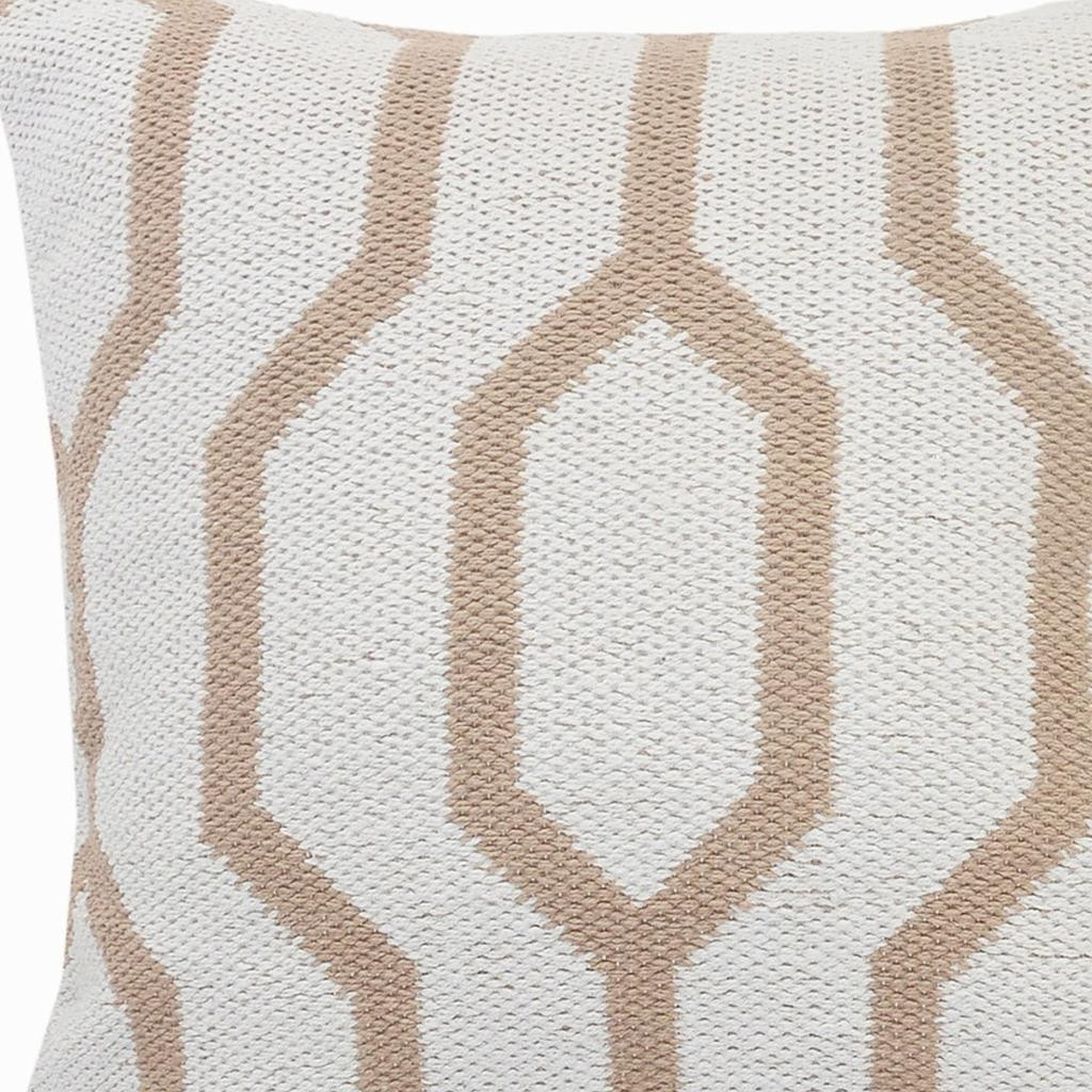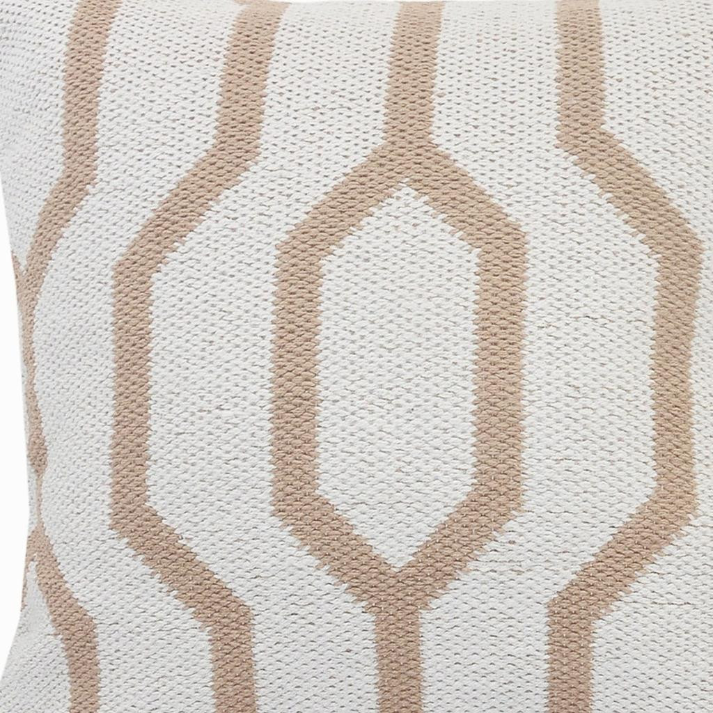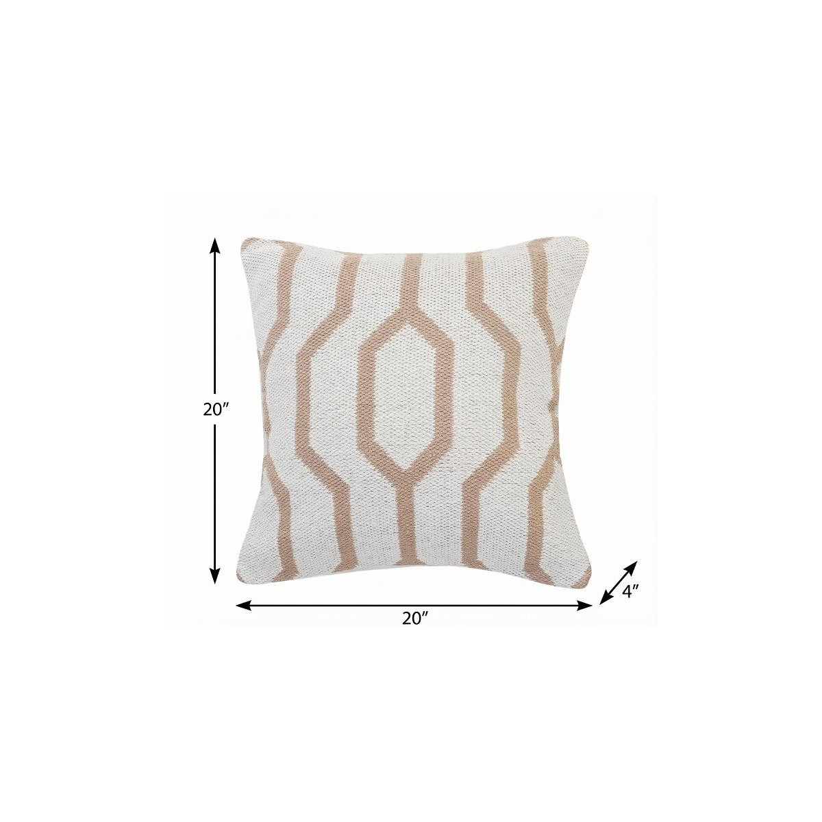 The perfect complement to your sofa, favorite chair, or bed, this 20" x 20" white and tan 100% cotton geometric zippered pillow is a great decorative accent. The white and tan coloring of the soft and long lasting 100% cotton will add dimension and texture to your space. Great to use on its own or mix with other decorations for the perfect look. Decorative pillows are a great way to change up the look and feel of your space easily and quickly. 4" H x 20" W x 20" D
