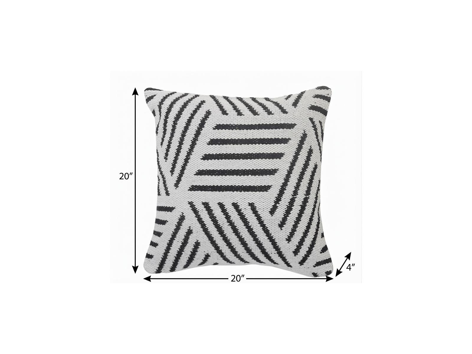 Bring a bit of fashion and zip to your space with this eye-catching and comfy 20-inch black and white cotton geometric throw pillow. The black and white coloring of the extremely durable and long lasting cotton will add dimension and texture to your space. This soft polyfill filled pillow not only is decorative but made to be comfy and cozy all day long. For anyone that loves to decorate or accent their space with color and texture. Decorative throw pillows not only add color and dimension to your space but can be comfy and supportive when you are lounging and cuddling as well. 20-inch h x 20-inch w x 4-inch d.