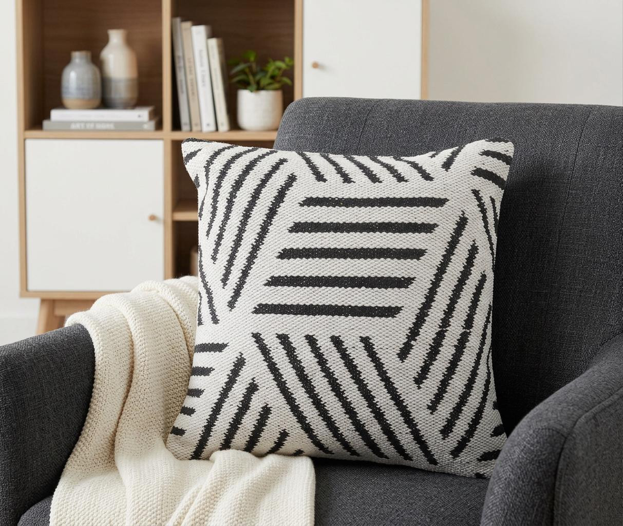white cotton geometric throw pillow, cotton geometric throw pillow, geometric throw pillow, black white cotton geometric throw, 20" black white cotton geometric |