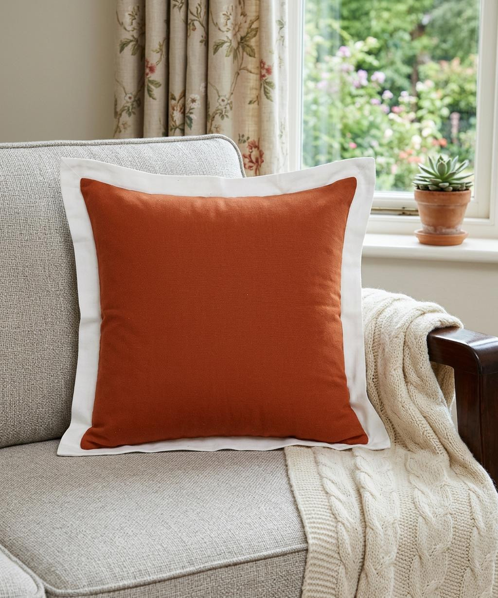 This 20" x 20" cinnamon and white 100% cotton geometric zippered pillow will add a beautiful decorative accent to your decor. This cinnamon and white colored decorative pillow is made from high grade 100% cotton that makes it super soft to the touch and long lasting. Great to use on its own or mix with other decorations for the perfect look. A great decorative accessory for your favorite chair, to accent your sofa, or to use as part of your bed ensemble. 4" H x 20" W x 20" D