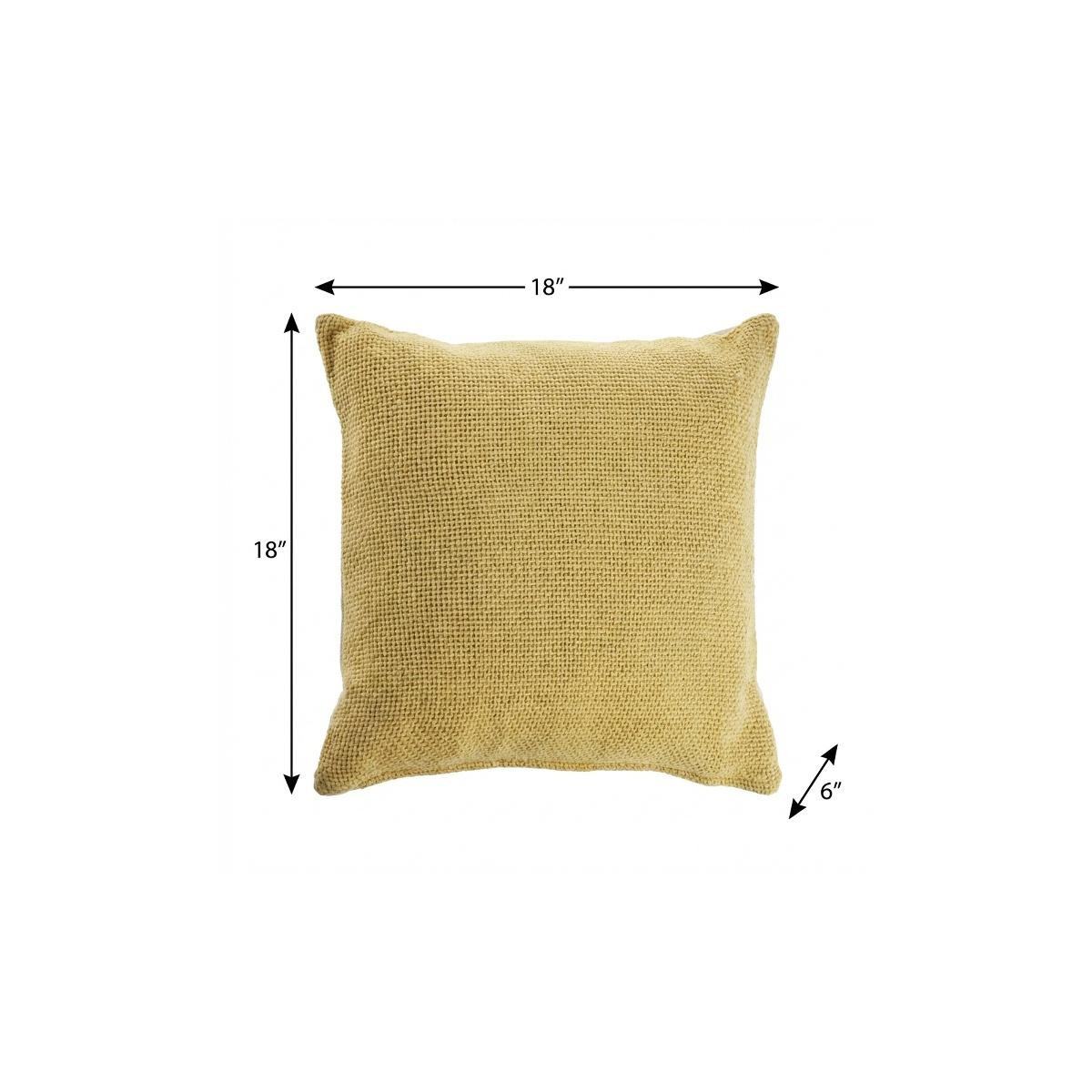 Unique and decorative, this comfortable 18" x 18" yellow 100% cotton zippered pillow will leave a lasting impression. This yellow colored decorative pillow is made from high grade 100% cotton that makes it super soft to the touch and long lasting. Great to use on its own or mix with other decorations for the perfect look. A great decorative accessory for your favorite chair, to accent your sofa, or to use as part of your bed ensemble. 18" H x 18" W x 18" D