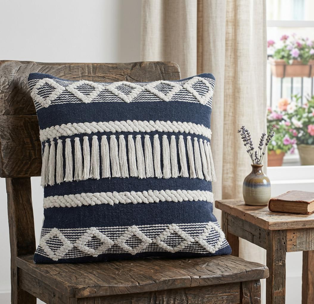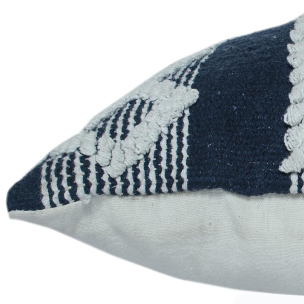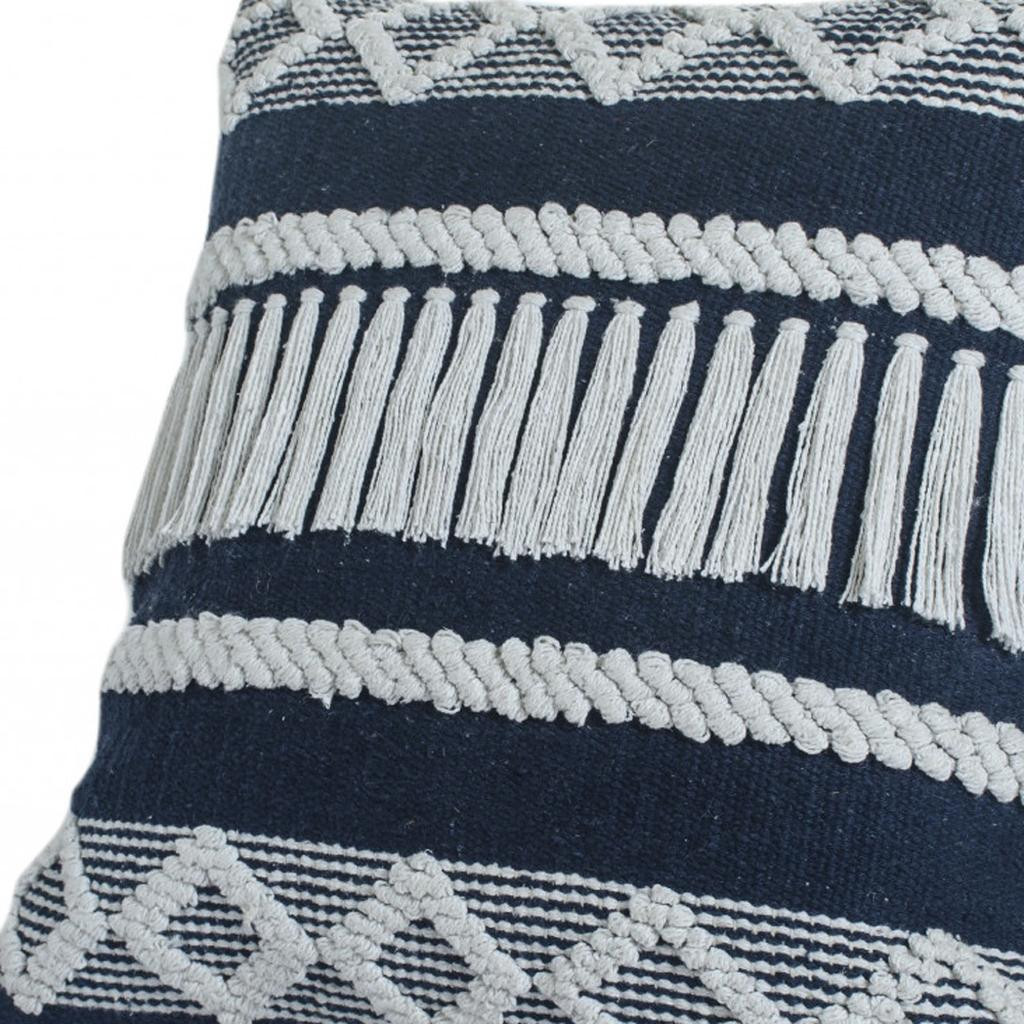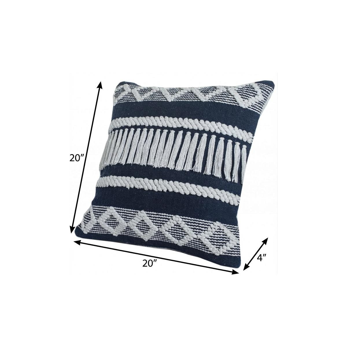 The perfect complement to your sofa, favorite chair, or bed, this 20" x 20" blue and ivory 100% cotton geometric zippered pillow is a great decorative accent. This blue and ivory hued piece represents quality construction, expertly made from premium 100% cotton that is not only long lasting but super soft to the touch as well. Great to use on its own or mix with other decorations for the perfect look. Decorative pillows are a great way to change up the look and feel of your space easily and quickly. 4" H x 20" W x 20" D