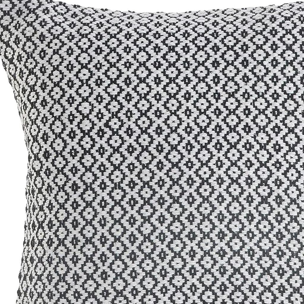 Unique and decorative, this comfortable 18" x 18" black and white 100% cotton geometric zippered pillow will leave a lasting impression. The black and white coloring of the soft and long lasting 100% cotton will add dimension and texture to your space. Decorative throw pillows not only add color and dimension to your space but can be comfy and supportive when you are lounging and cuddling as well. Decorative pillows are a great way to change up the look and feel of your space easily and quickly. 18" H x 18" W x 18" D