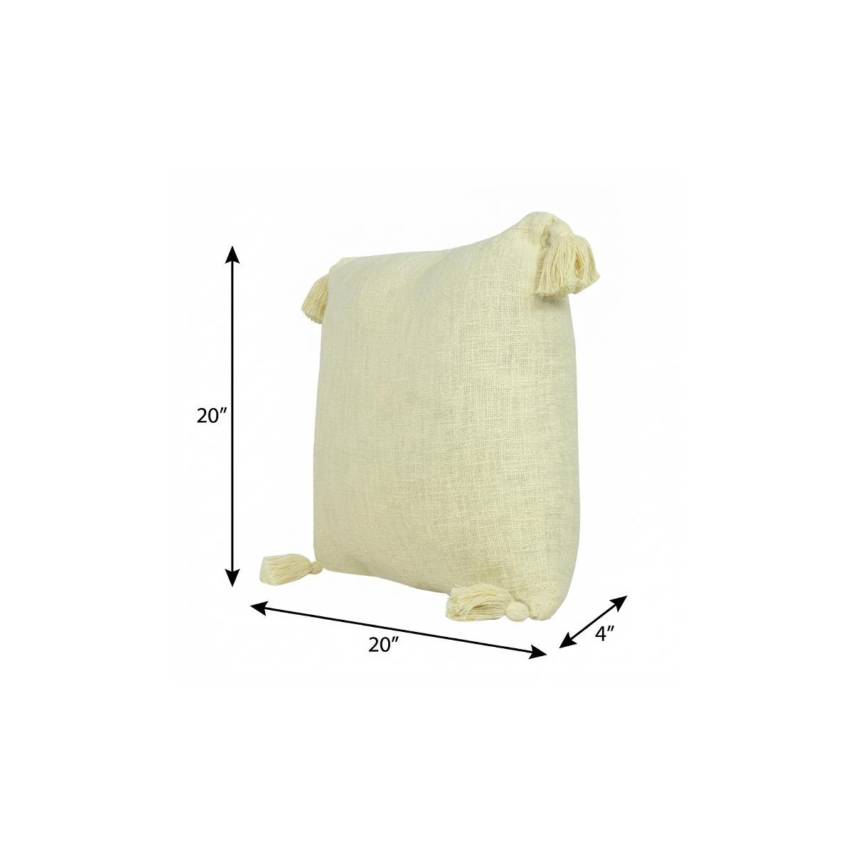 Add an air of fashion to your room and rejuvenate the space with this cute and fashionable 20" x 20" light yellow 100% cotton zippered pillow. The light yellow coloring of the soft and long lasting 100% cotton will add dimension and texture to your space. Great to use on its own or mix with other decorations for the perfect look. A great decorative accessory for your favorite chair, to accent your sofa, or to use as part of your bed ensemble. 4" H x 20" W x 20" D