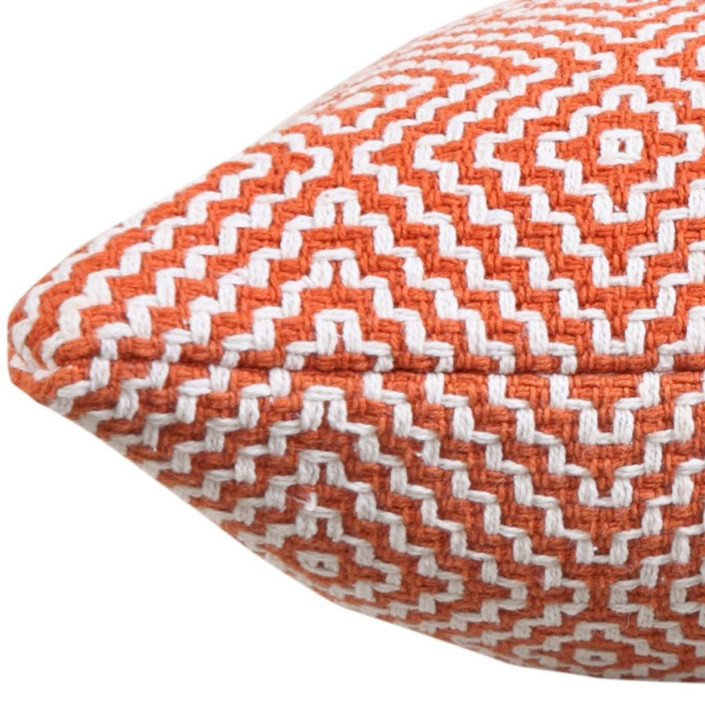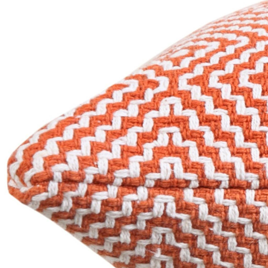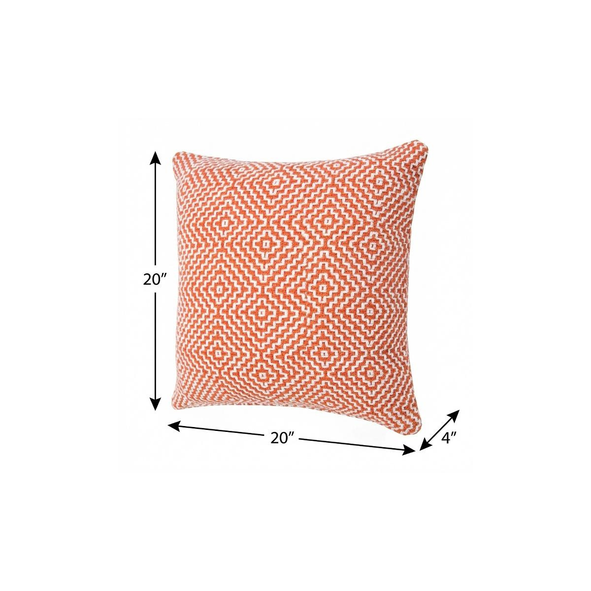 Add an air of fashion to your room and rejuvenate the space with this cute and fashionable 20" x 20" orange and white 100% cotton geometric zippered pillow. This orange and white hued piece represents quality construction, expertly made from premium 100% cotton that is not only long lasting but super soft to the touch as well. Great to use on its own or mix with other decorations for the perfect look. A great decorative accessory for your favorite chair, to accent your sofa, or to use as part of your bed ensemble. 4" H x 20" W x 20" D