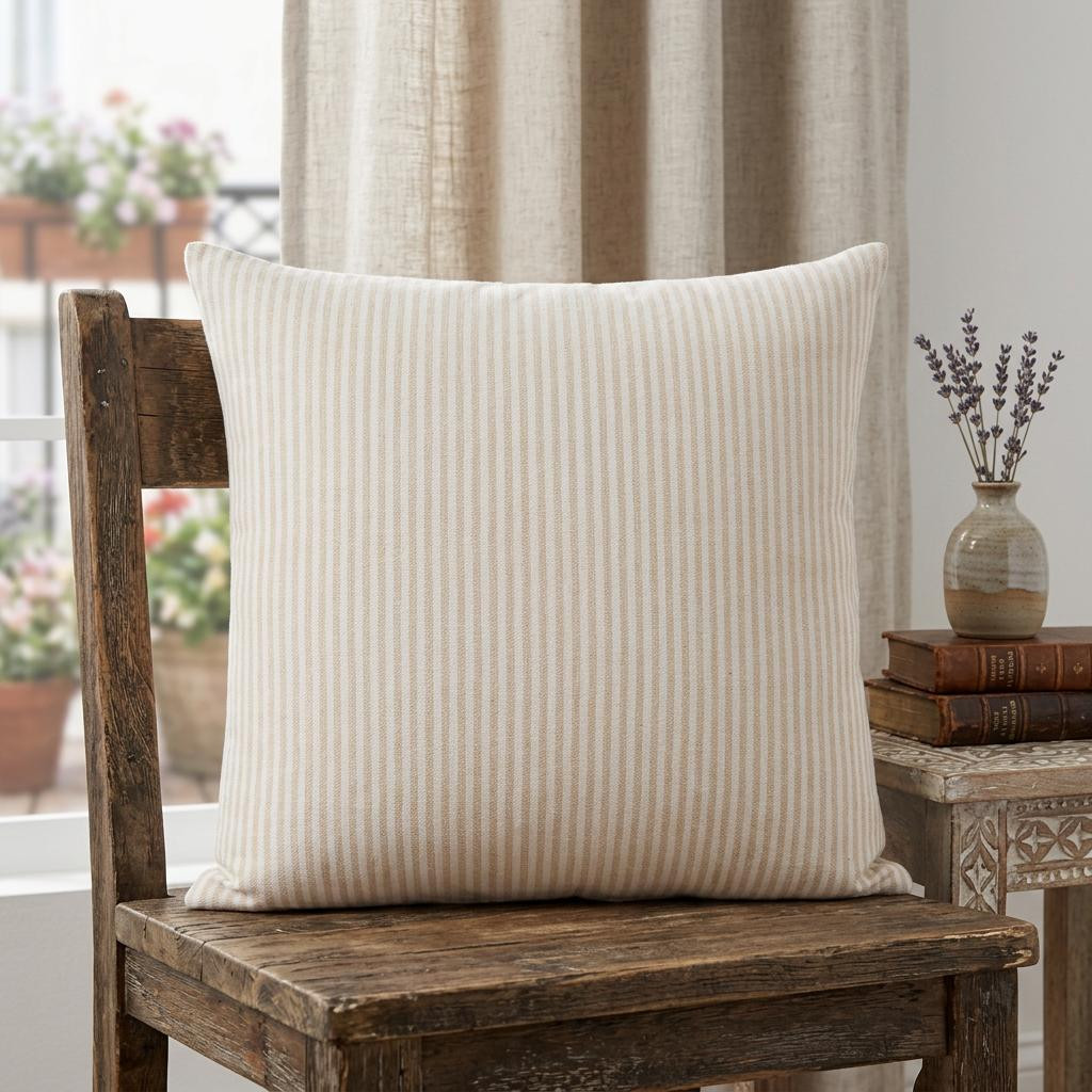 zippered 20" X 20" X cotton throw pillow, 20" X 20" X cotton throw pillow, cotton throw pillow, 20" X 20" X beige striped zippered, set 20" X 20" X beige striped |