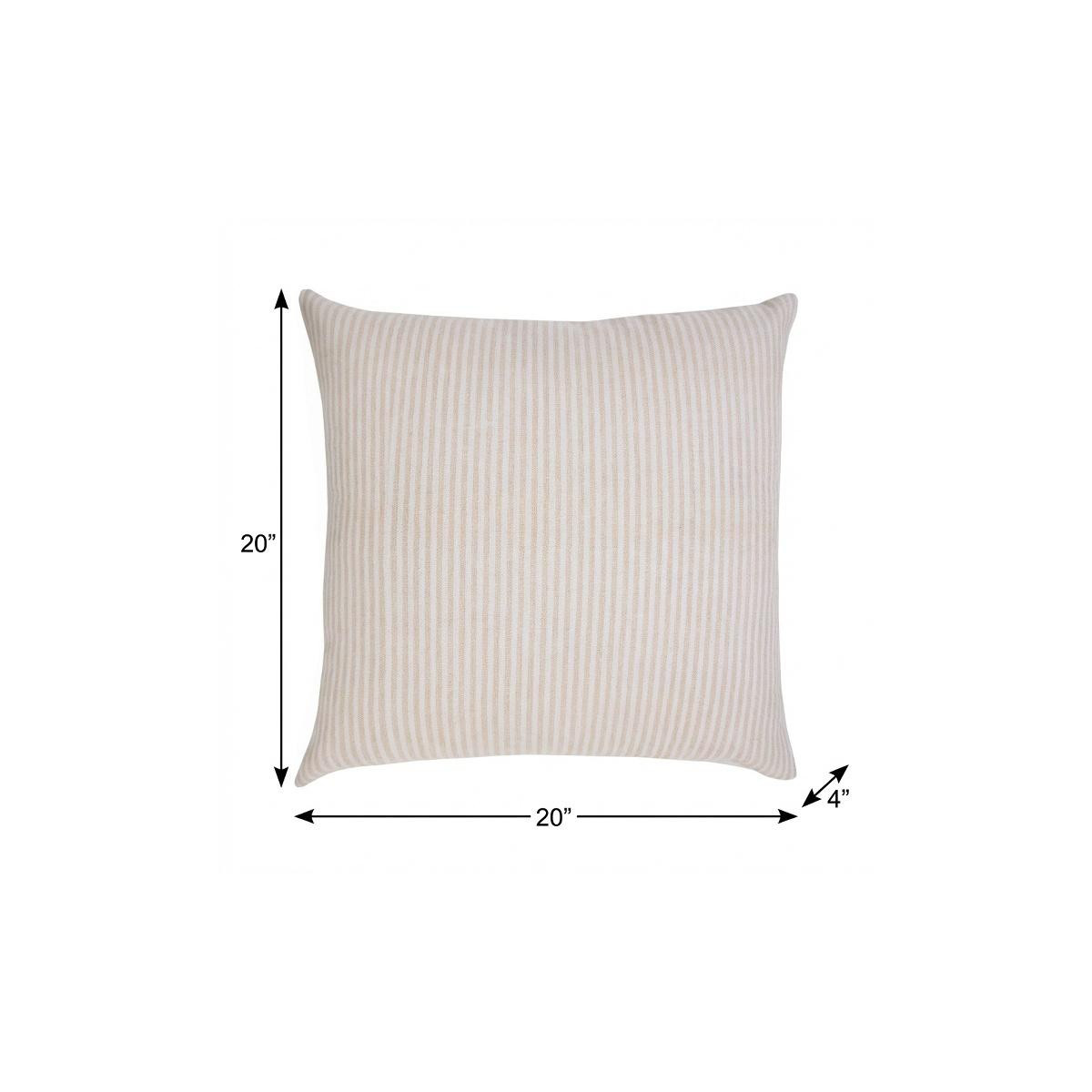 Add an air of fashion to your room and rejuvenate the space with this cute and fashionable 20" x 20" beige and white 100% cotton striped zippered pillow. This beige and white hued piece represents quality construction, expertly made from premium 100% cotton that is not only long lasting but super soft to the touch as well. Great to use on its own or mix with other decorations for the perfect look. Decorative pillows are a great way to change up the look and feel of your space easily and quickly. 4" H x 20" W x 20" D