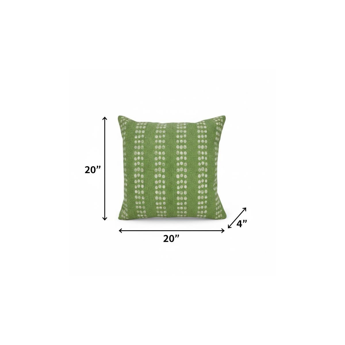 The perfect complement to your sofa, favorite chair, or bed, this 20" x 20" green and white 100% cotton striped zippered pillow is a great decorative accent. This green and white colored decorative pillow is made from high grade 100% cotton that makes it super soft to the touch and long lasting. Great to use on its own or mix with other decorations for the perfect look. A great decorative accessory for your favorite chair, to accent your sofa, or to use as part of your bed ensemble. 4" H x 20" W x 20" D