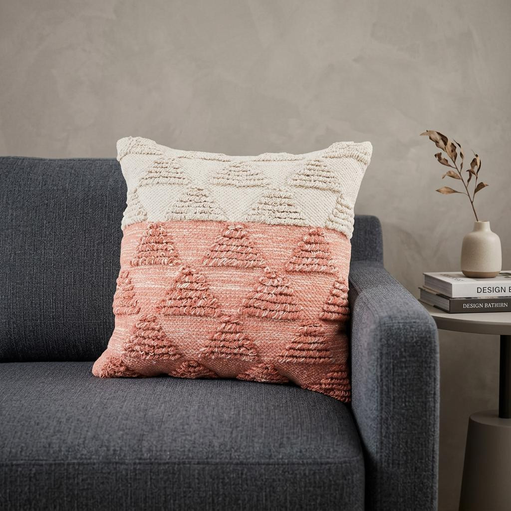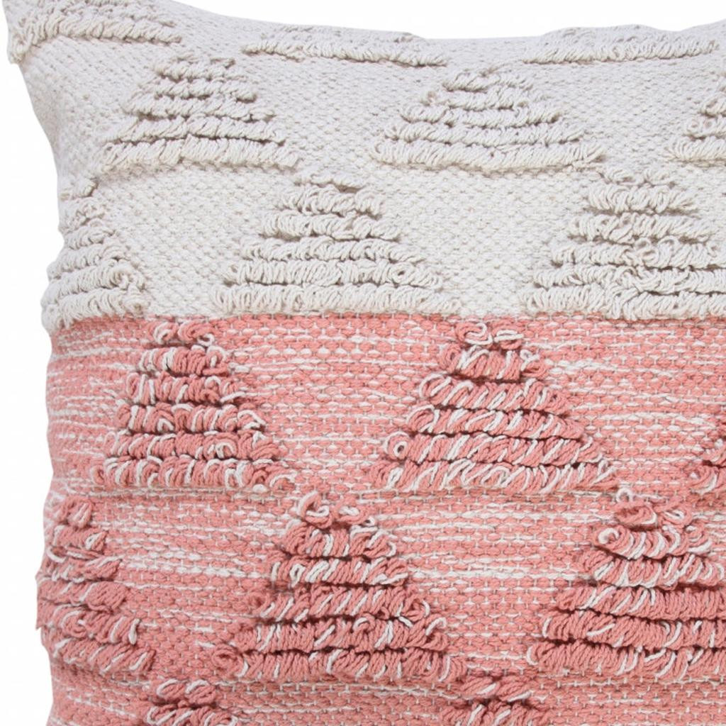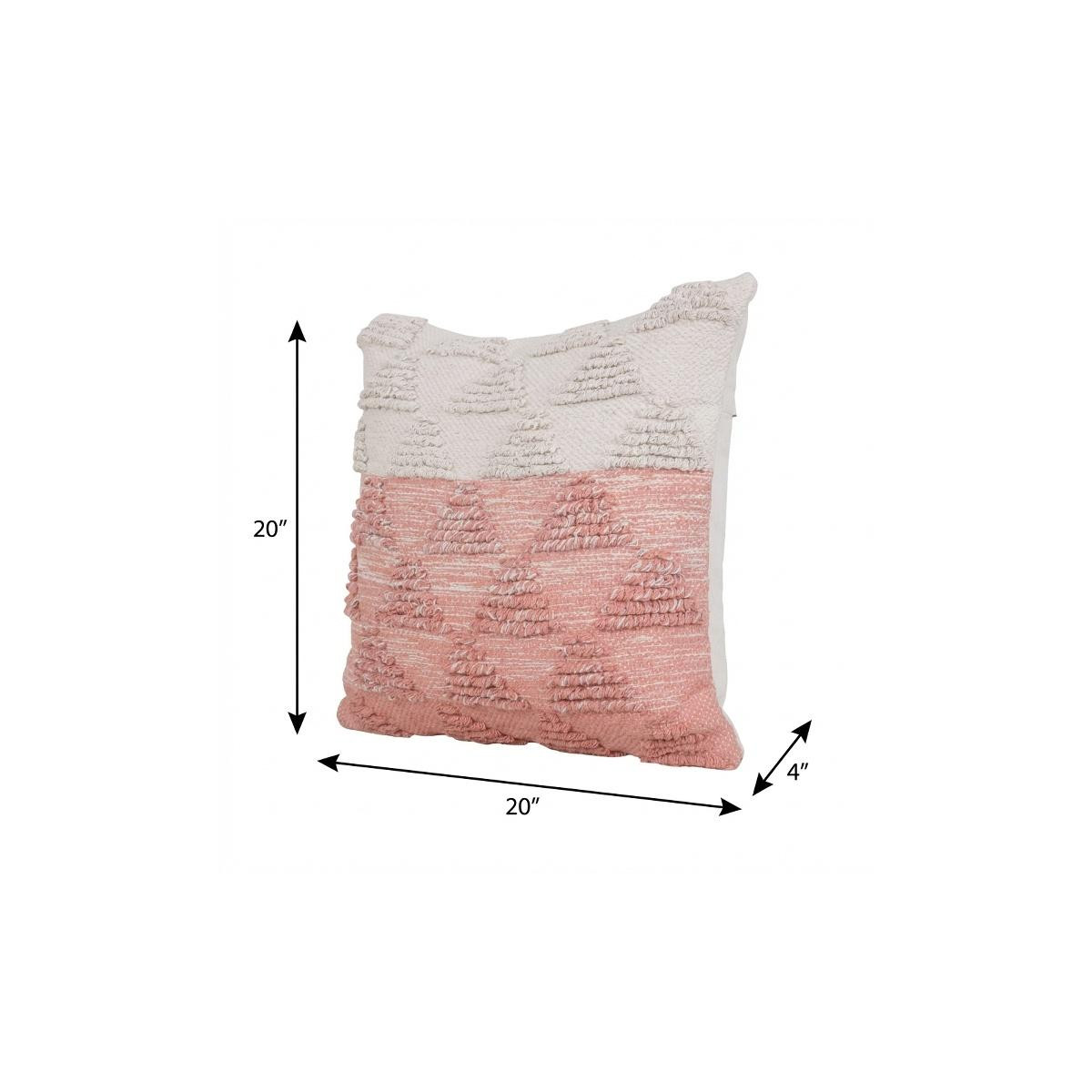 The 20" x 20" pink and off-white 100% cotton geometric zippered pillow is the perfect decorative accessory for your home. Soft and textural pink and off-white 100% cotton has been used to make this pillow look and feel like a real treasure. For anyone that loves to decorate or accent their space with color and texture. Decorative pillows are a great way to change up the look and feel of your space easily and quickly. 4" H x 20" W x 20" D