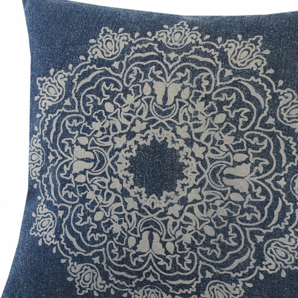 Unique and decorative, this comfortable 20" x 20" blue and white 100% cotton geometric zippered pillow will leave a lasting impression. This blue and white colored decorative pillow is made from high grade 100% cotton that makes it super soft to the touch and long lasting. Great to use on its own or mix with other decorations for the perfect look. A great decorative accessory for your favorite chair, to accent your sofa, or to use as part of your bed ensemble. 4" H x 20" W x 20" D
