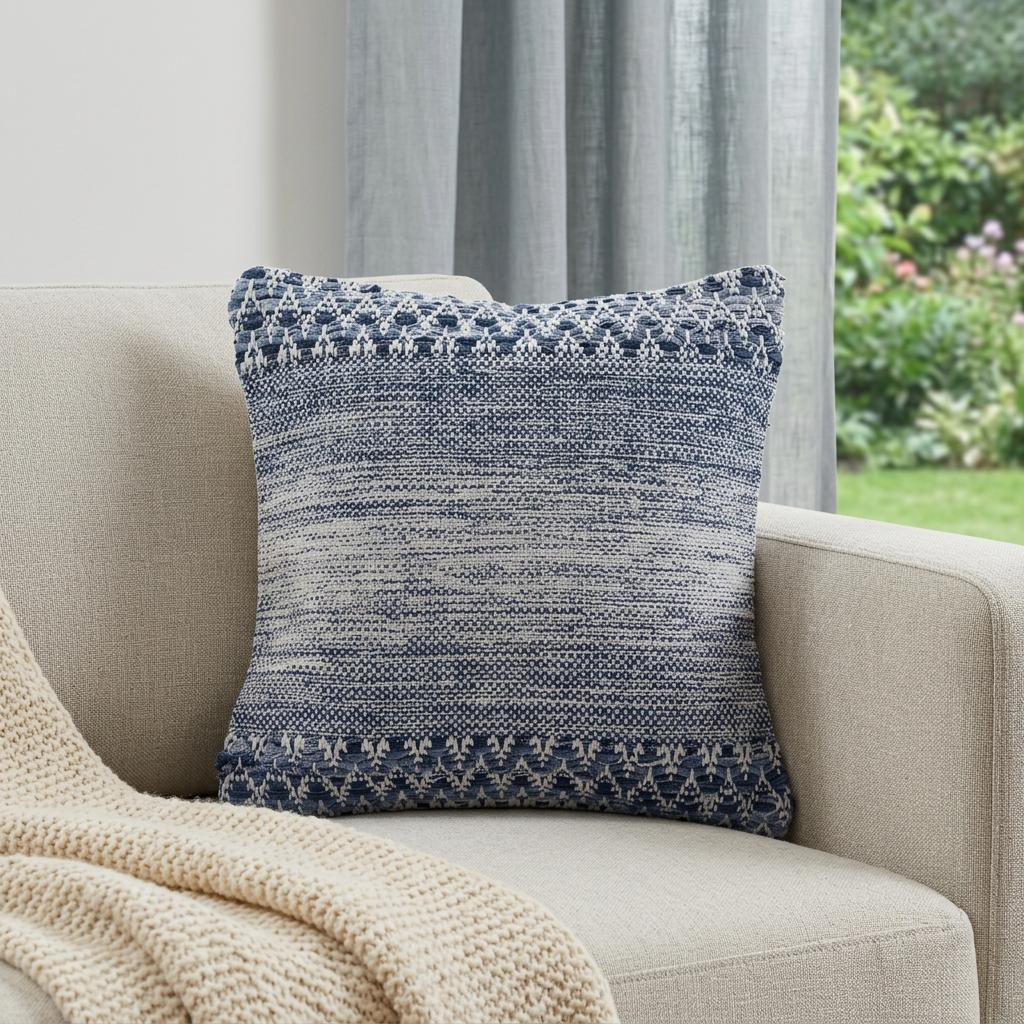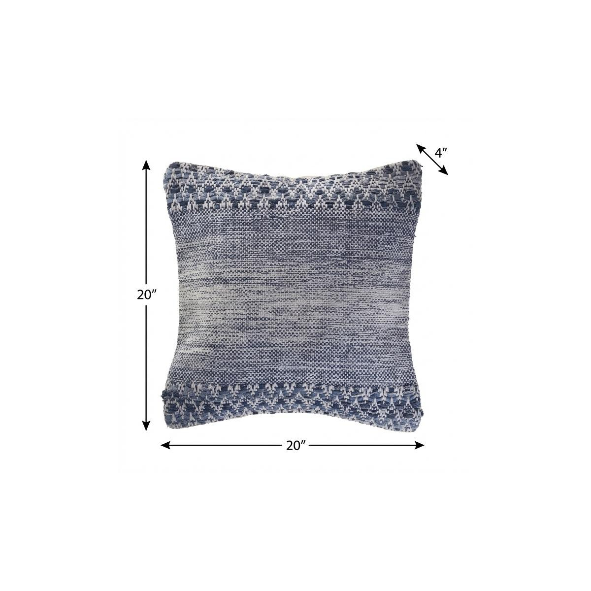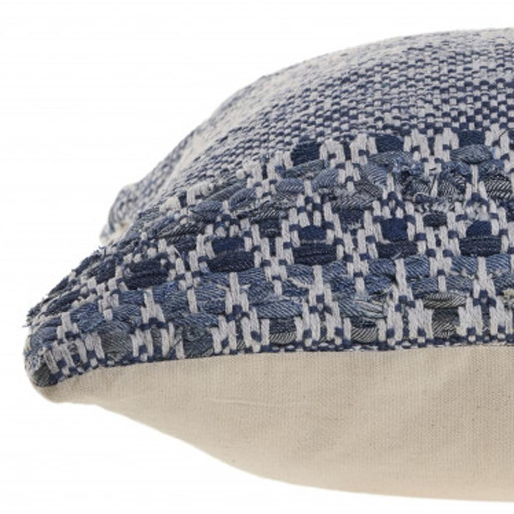 The 20" x 20" blue and ivory 100% cotton chevron zippered pillow is the perfect decorative accessory for your home. Soft and textural blue and ivory 100% cotton has been used to make this pillow look and feel like a real treasure. Great to use on its own or mix with other decorations for the perfect look. Decorative pillows are a great way to change up the look and feel of your space easily and quickly. 4" H x 20" W x 20" D