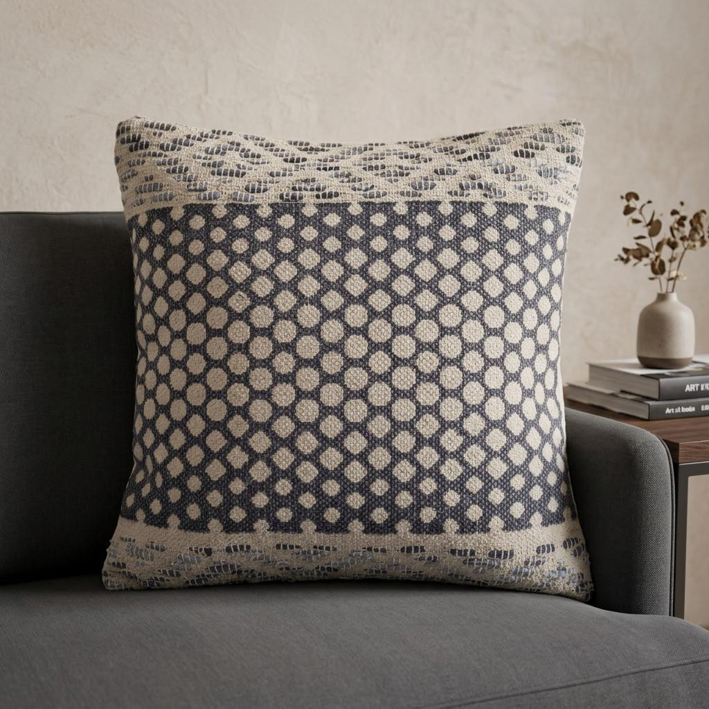 The perfect complement to your sofa, favorite chair, or bed, this 20" x 20" denim blue and ivory 100% cotton chevron zippered pillow is a great decorative accent. The denim blue and ivory coloring of the soft and long lasting 100% cotton will add dimension and texture to your space. Great to use on its own or mix with other decorations for the perfect look. A great decorative accessory for your favorite chair, to accent your sofa, or to use as part of your bed ensemble. 4" H x 20" W x 20" D