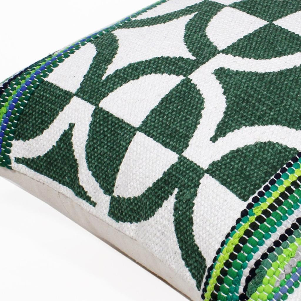 The perfect complement to your sofa, favorite chair, or bed, this 20" x 20" green white and blue 100% cotton geometric zippered pillow is a great decorative accent. This green white and blue colored decorative pillow is made from high grade 100% cotton that makes it super soft to the touch and long lasting. For anyone that loves to decorate or accent their space with color and texture. A great decorative accessory for your favorite chair, to accent your sofa, or to use as part of your bed ensemble. 4" H x 20" W x 20" D