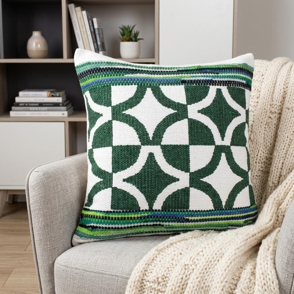 zippered 20" X 20" X cotton throw pillow, 20" X 20" X cotton throw pillow, cotton throw pillow, green geometric zippered 20" X 20" X cotton, 20" X 20" X green geometric zippered |