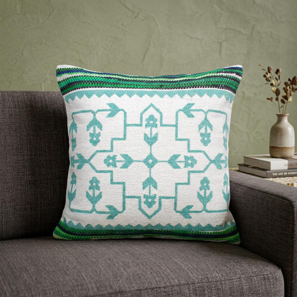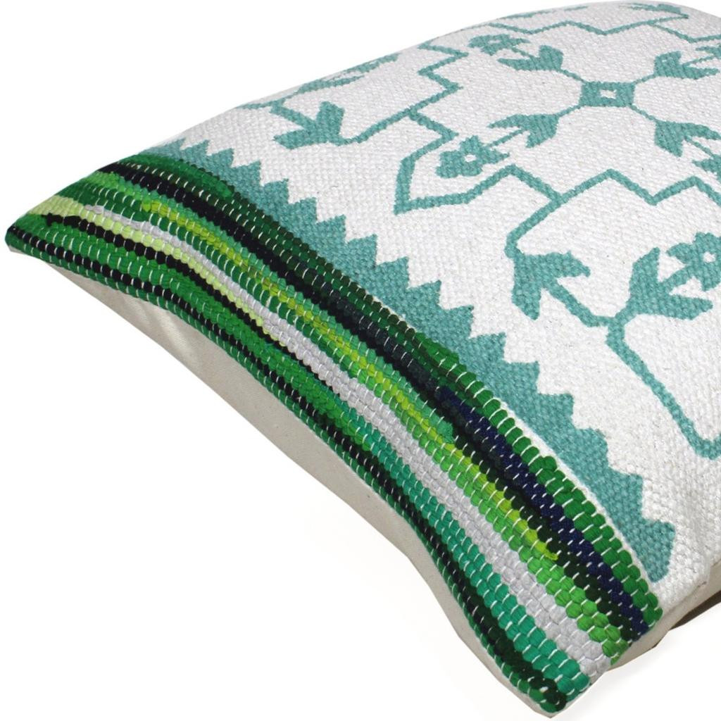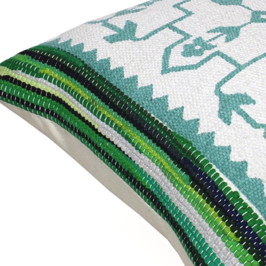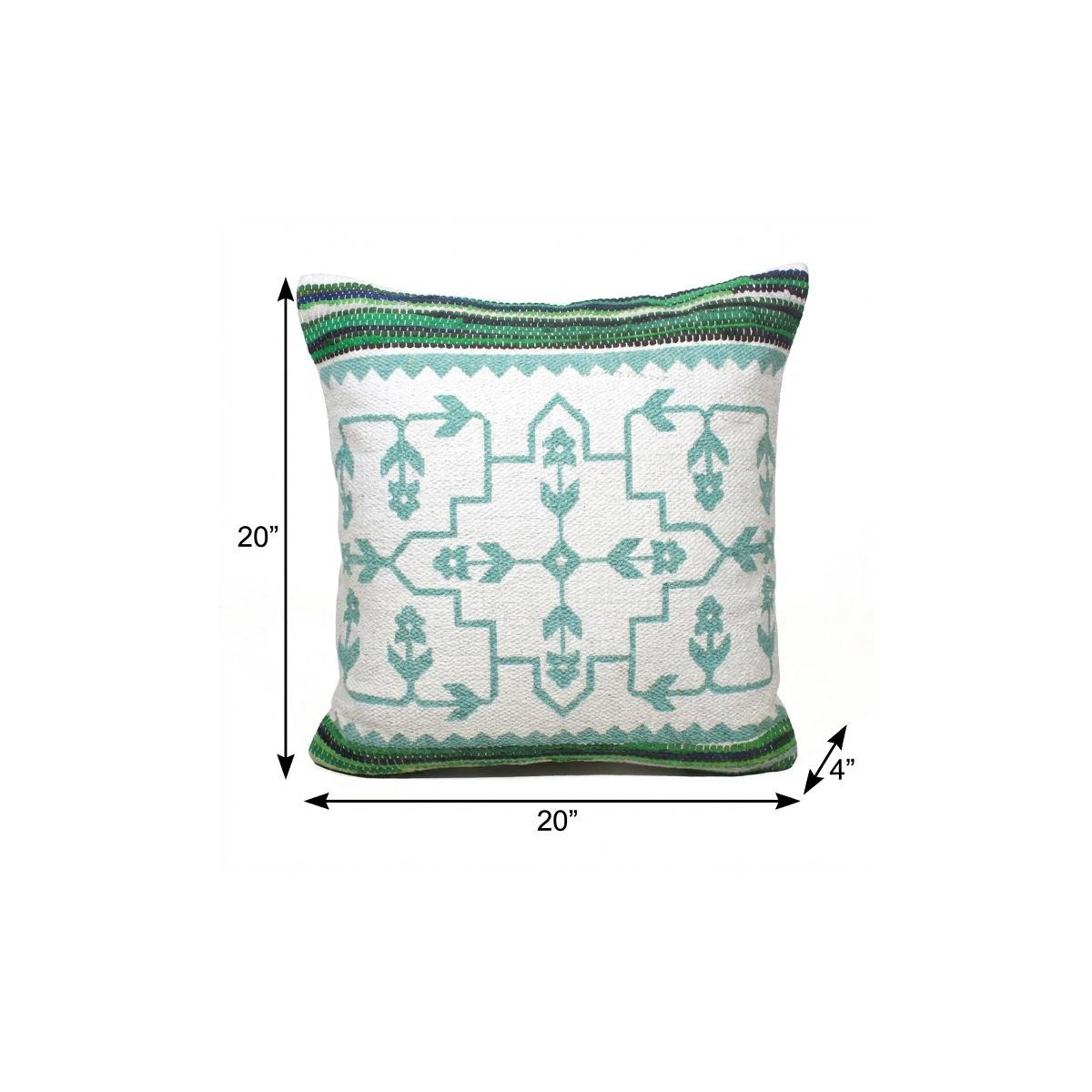 Bring a bit of fashion and zip to your space with this eye-catching and comfy 20" x 20" green white and blue 100% cotton geometric zippered pillow. This super soft decorative pillow is expertly made of high grade, long lasting 100% cotton in a green white and blue coloration. For anyone that loves to decorate or accent their space with color and texture. Decorative pillows are a great way to change up the look and feel of your space easily and quickly. 4" H x 20" W x 20" D