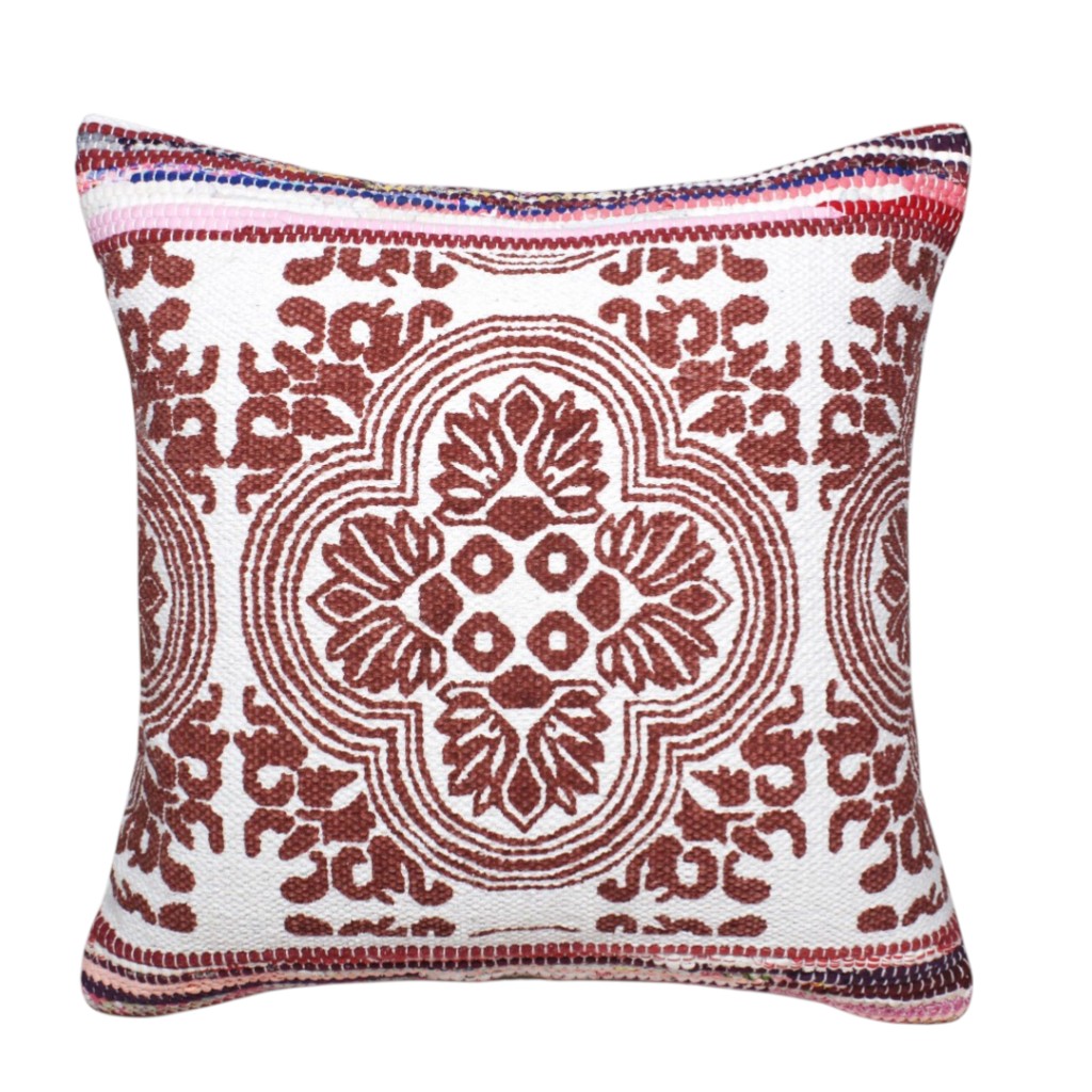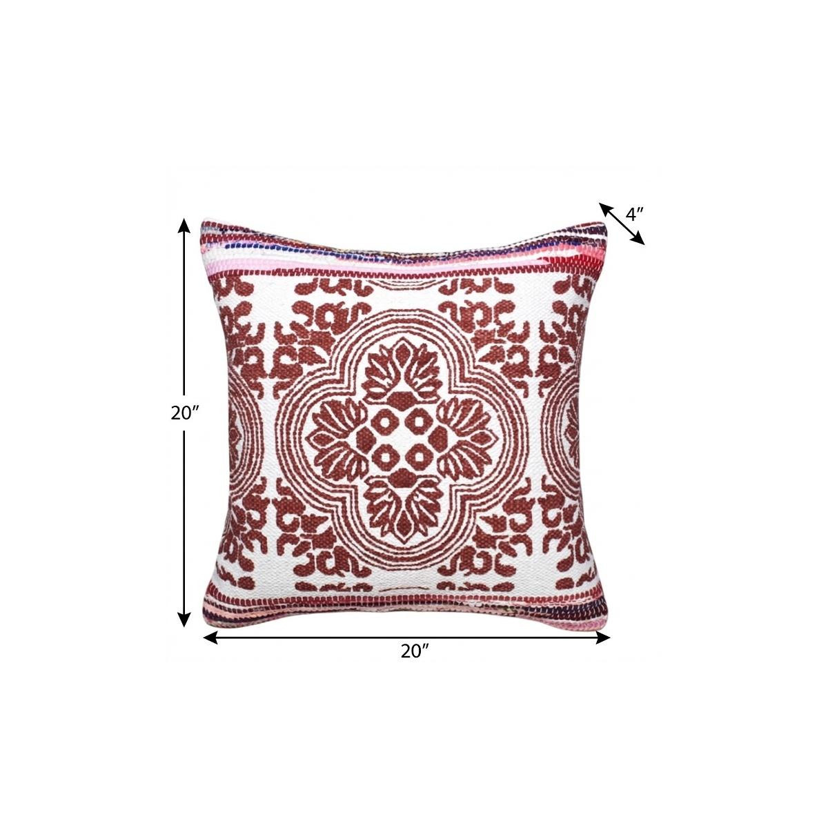 Unique and decorative, this comfortable 20" x 20" red white purple and pink 100% cotton geometric zippered pillow will leave a lasting impression. This red white purple and pink hued piece represents quality construction, expertly made from premium 100% cotton that is not only long lasting but super soft to the touch as well. For anyone that loves to decorate or accent their space with color and texture. Decorative pillows are a great way to change up the look and feel of your space easily and quickly. 4" H x 20" W x 20" D