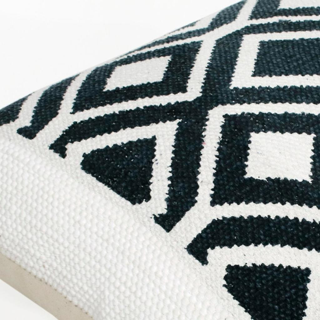 Unique and decorative, this comfortable 20" x 20" deep navy and white 100% cotton geometric zippered pillow will leave a lasting impression. This super soft decorative pillow is expertly made of high grade, long lasting 100% cotton in a deep navy and white coloration. Decorative throw pillows not only add color and dimension to your space but can be comfy and supportive when you are lounging and cuddling as well. Decorative pillows are a great way to change up the look and feel of your space easily and quickly. 4" H x 20" W x 20" D