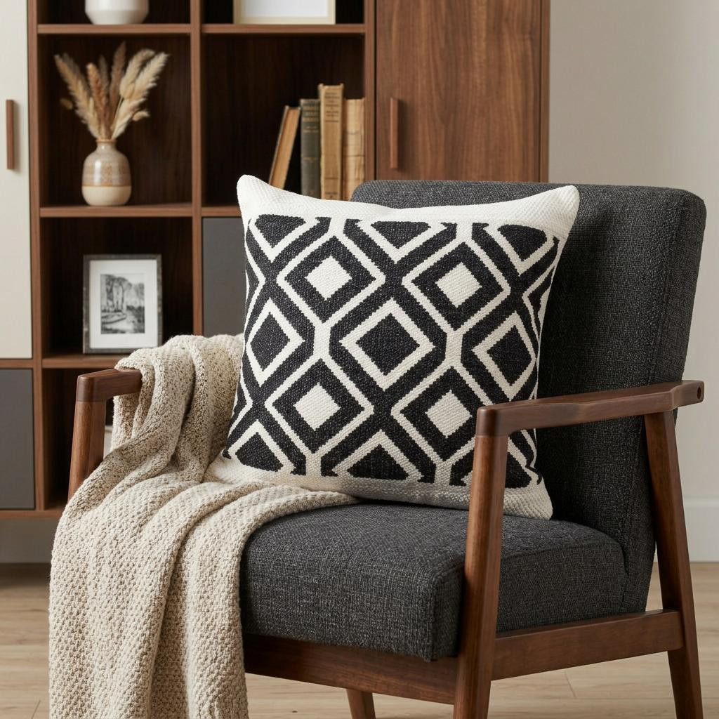 zippered 20" X 20" X cotton throw pillow, 20" X 20" X cotton throw pillow, cotton throw pillow, black geometric zippered 20" X 20" X cotton, 20" X 20" X black geometric zippered |