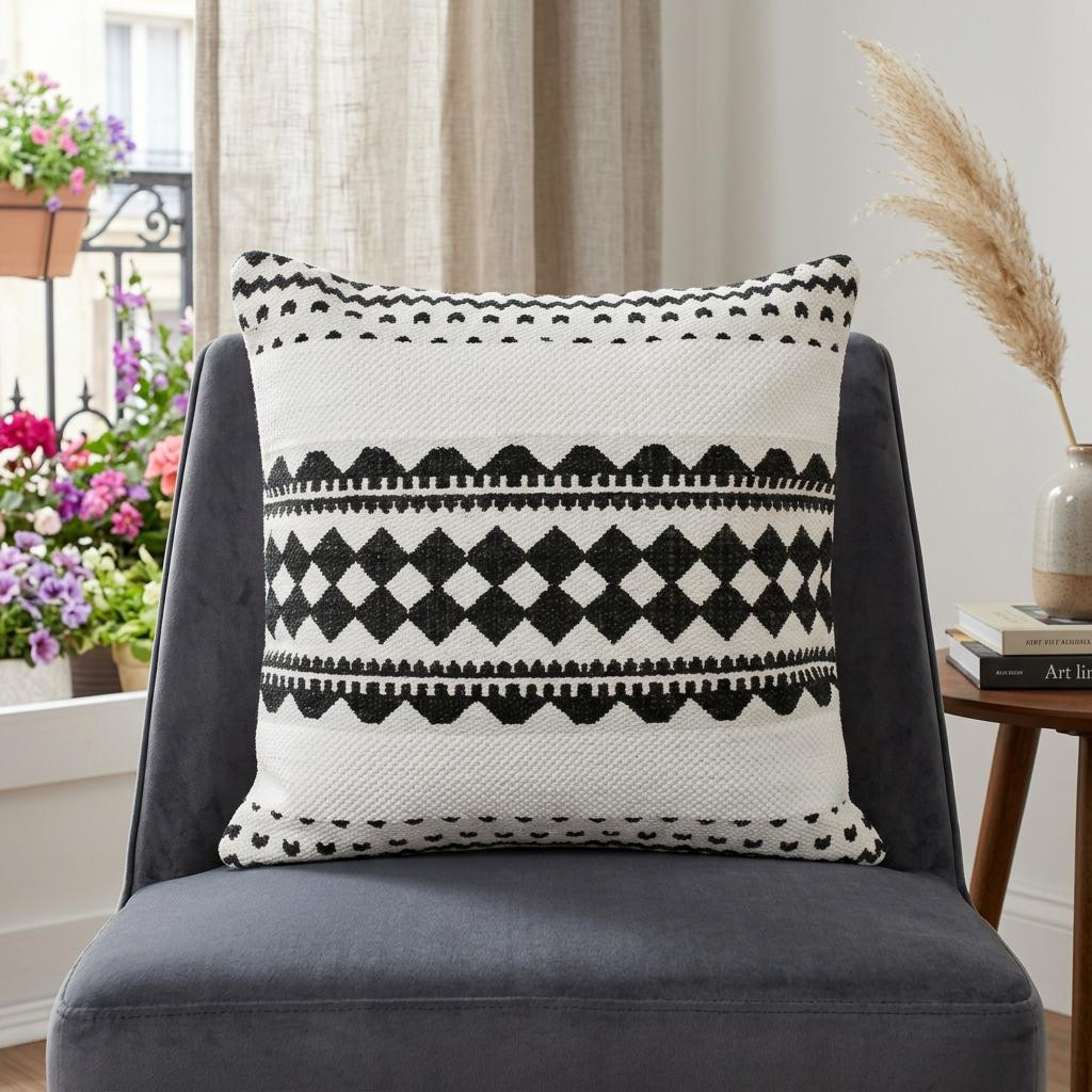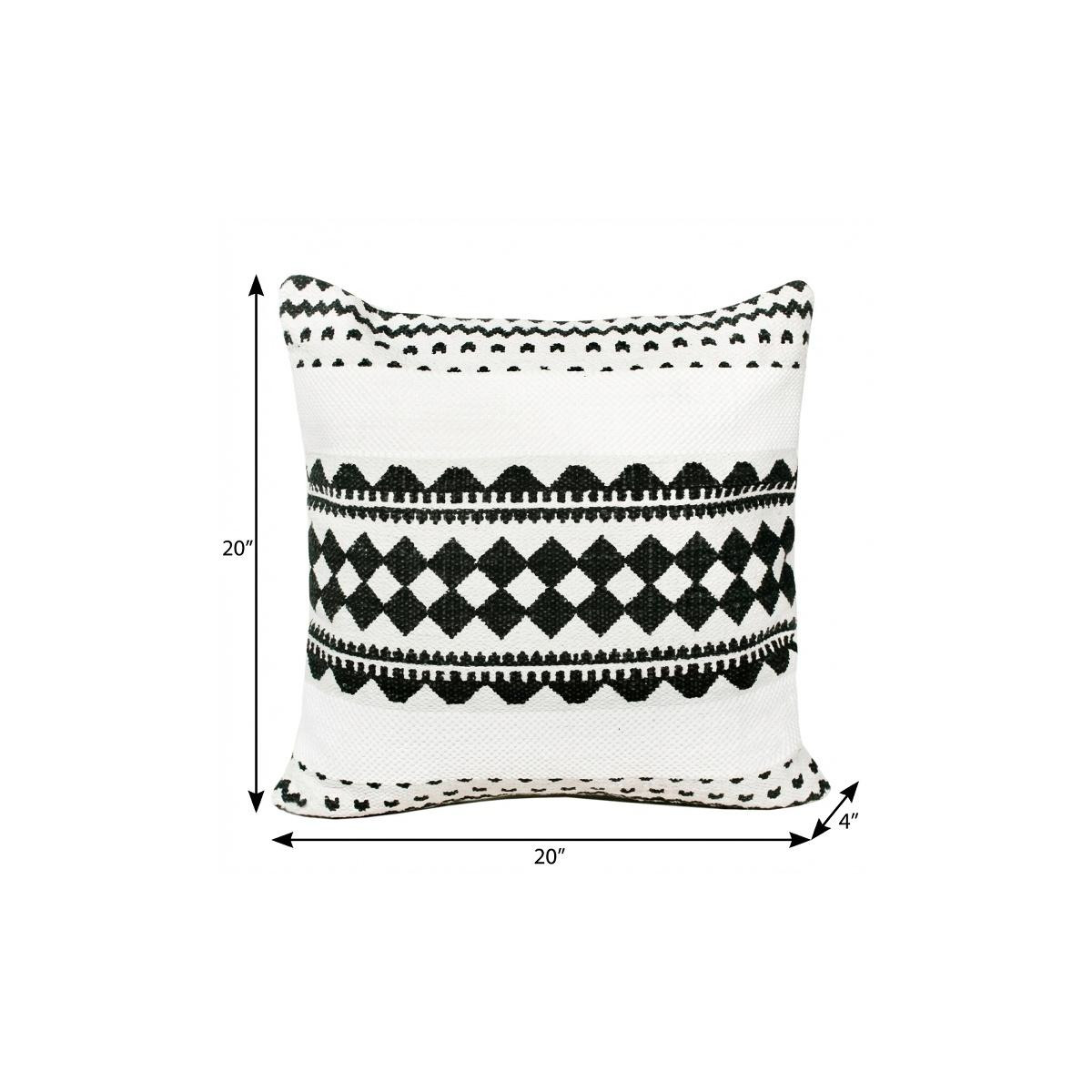 Bring a bit of fashion and zip to your space with this eye-catching and comfy 20" x 20" black and white 100% cotton geometric zippered pillow. Soft and textural black and white 100% cotton has been used to make this pillow look and feel like a real treasure. For anyone that loves to decorate or accent their space with color and texture. Decorative pillows are a great way to change up the look and feel of your space easily and quickly. 4" H x 20" W x 20" D