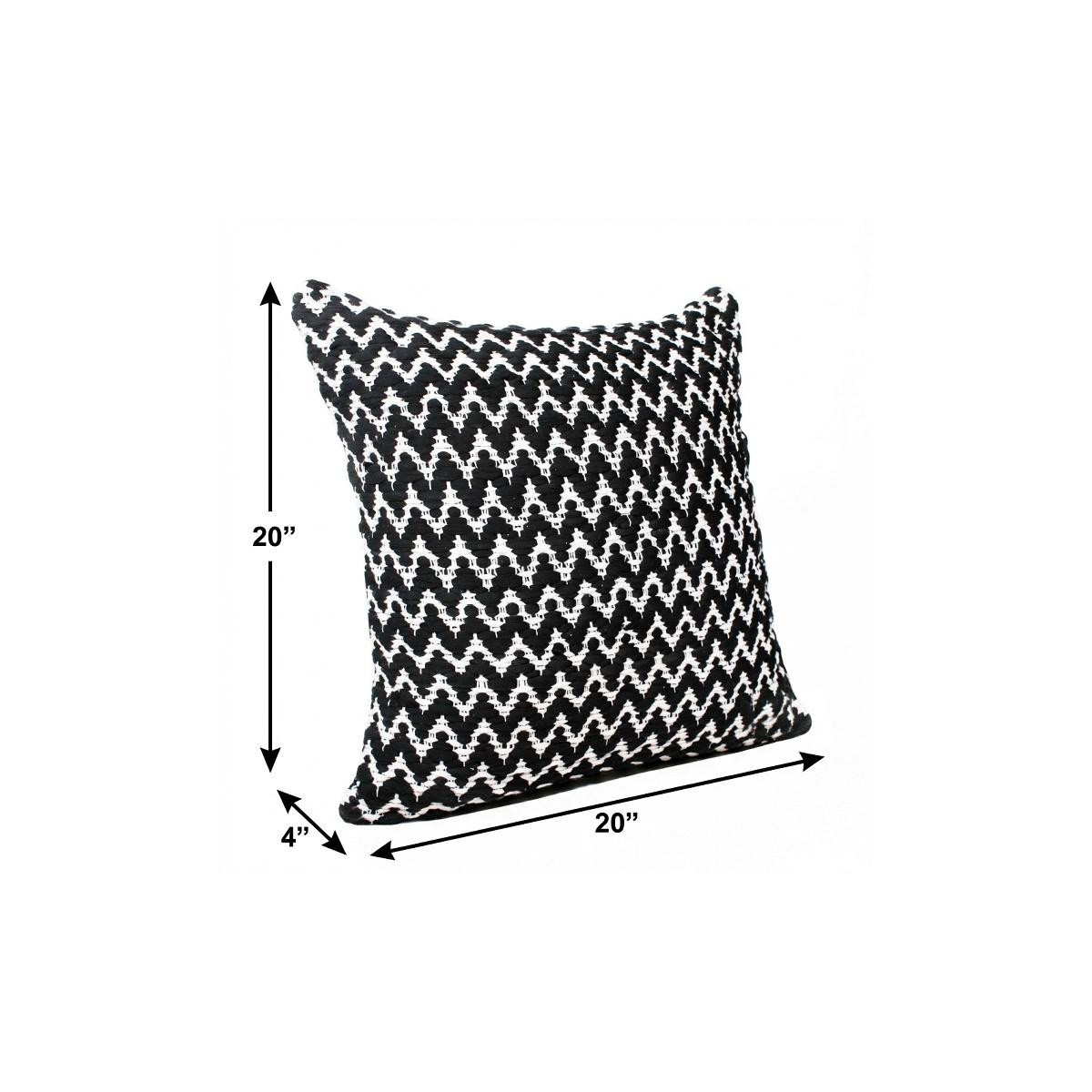 Bring a bit of fashion and zip to your space with this eye-catching and comfy 20" x 20" black and white polyester chevron zippered pillow. This black and white colored decorative pillow is made from high grade polyester that is durable and long lasting. Decorative throw pillows not only add color and dimension to your space but can be comfy and supportive when you are lounging and cuddling as well. Decorative pillows are a great way to change up the look and feel of your space easily and quickly. 4" H x 20" W x 20" D