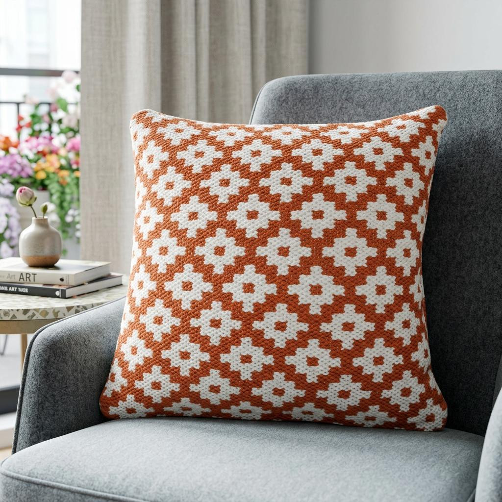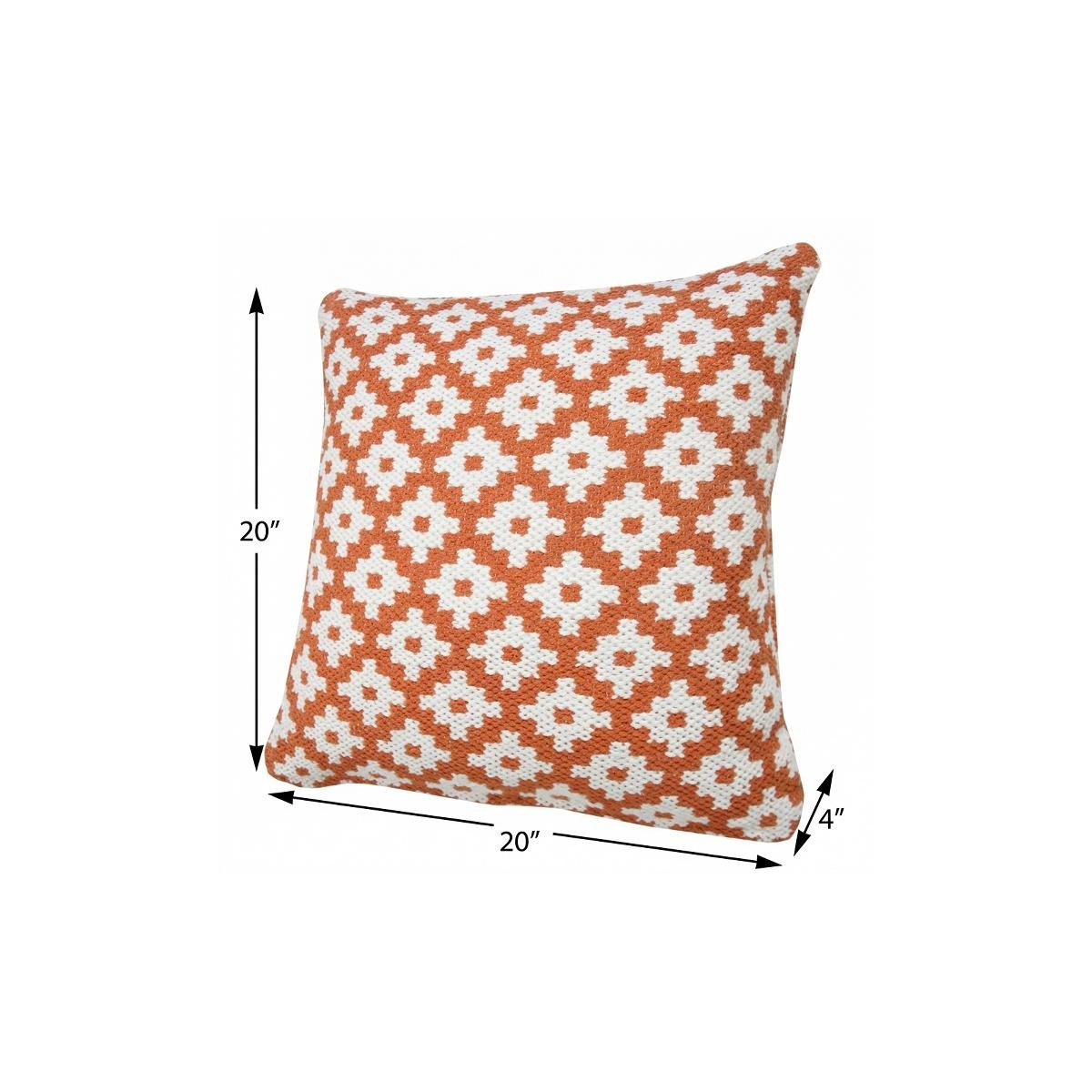 The 20" x 20" orange and white 100% cotton geometric zippered pillow is the perfect decorative accessory for your home. The orange and white coloring of the soft and long lasting 100% cotton will add dimension and texture to your space. For anyone that loves to decorate or accent their space with color and texture. Decorative pillows are a great way to change up the look and feel of your space easily and quickly. 4" H x 20" W x 20" D