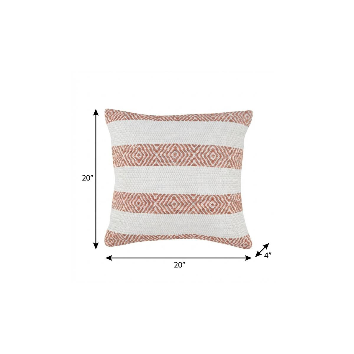 Bring a bit of fashion and zip to your space with this eye-catching and comfy 20" x 20" orange and white 100% cotton striped zippered pillow. This orange and white hued piece represents quality construction, expertly made from premium 100% cotton that is not only long lasting but super soft to the touch as well. For anyone that loves to decorate or accent their space with color and texture. A great decorative accessory for your favorite chair, to accent your sofa, or to use as part of your bed ensemble. 4" H x 20" W x 20" D