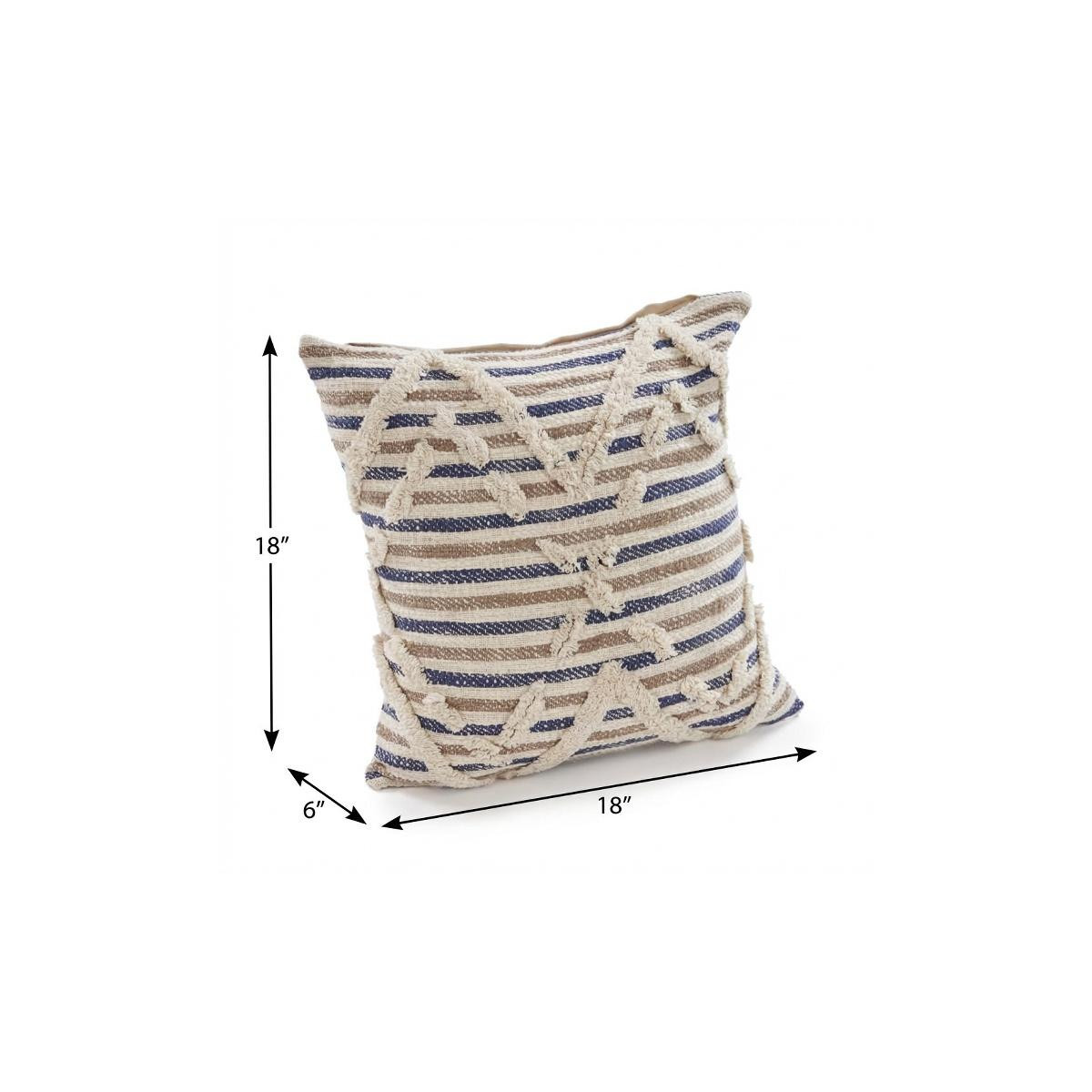 Bring a bit of fashion and zip to your space with this eye-catching and comfy 18-inch blue and beige cotton striped throw pillow. This blue and beige hued piece represents quality construction, expertly made from durable cotton that is not only long lasting but soft to the touch as well. This soft polyfill filled pillow not only is decorative but made to be comfy and cozy all day long. Great to use on its own or mix with other decorations for the perfect look. Decorative throw pillows not only add color and dimension to your space but can be comfy and supportive when you are lounging and cuddling as well. 18-inch h x 18-inch w x 6-inch d.