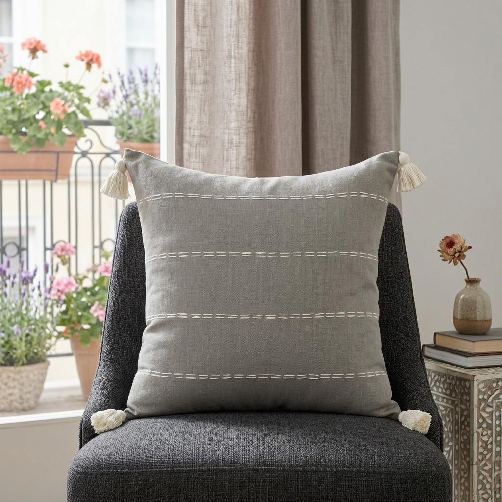 striped zippered linen throw pillow, zippered linen throw pillow, linen throw pillow, 20" X 20" gray striped zippered linen, 20" X 20" gray striped zippered |