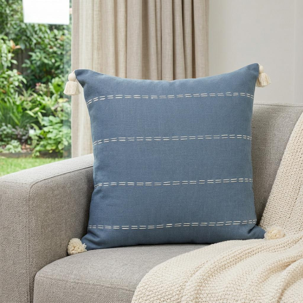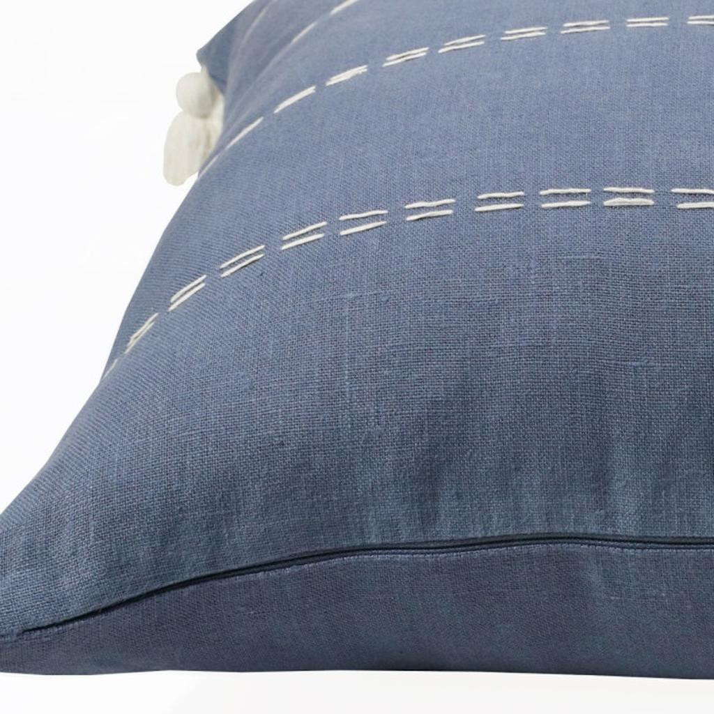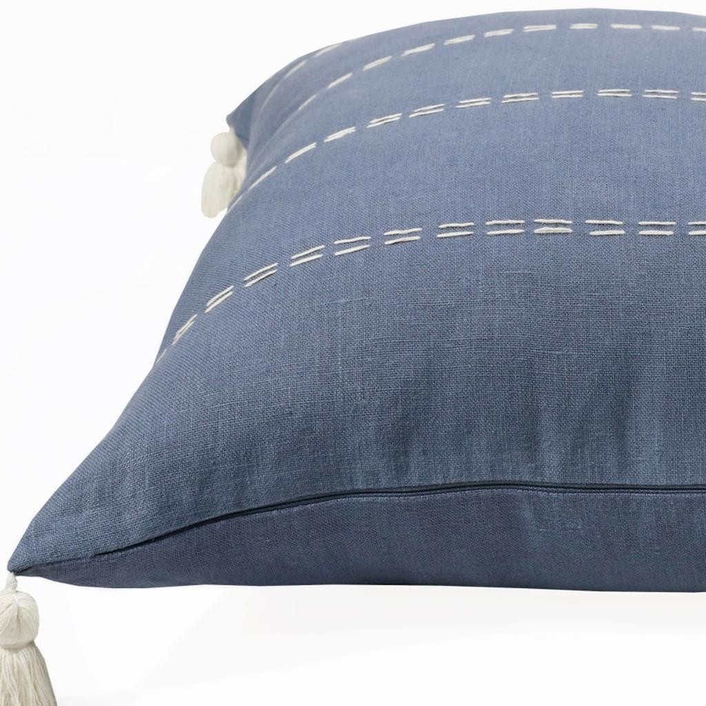 The 20" x 20" navy linen striped zippered pillow is the perfect decorative accessory for your home. Durable navy linen has been used to give this pillow a beautiful look that will stand the test of time. For anyone that loves to decorate or accent their space with color and texture. A great decorative accessory for your favorite chair, to accent your sofa, or to use as part of your bed ensemble. 4" H x 20" W x 20" D