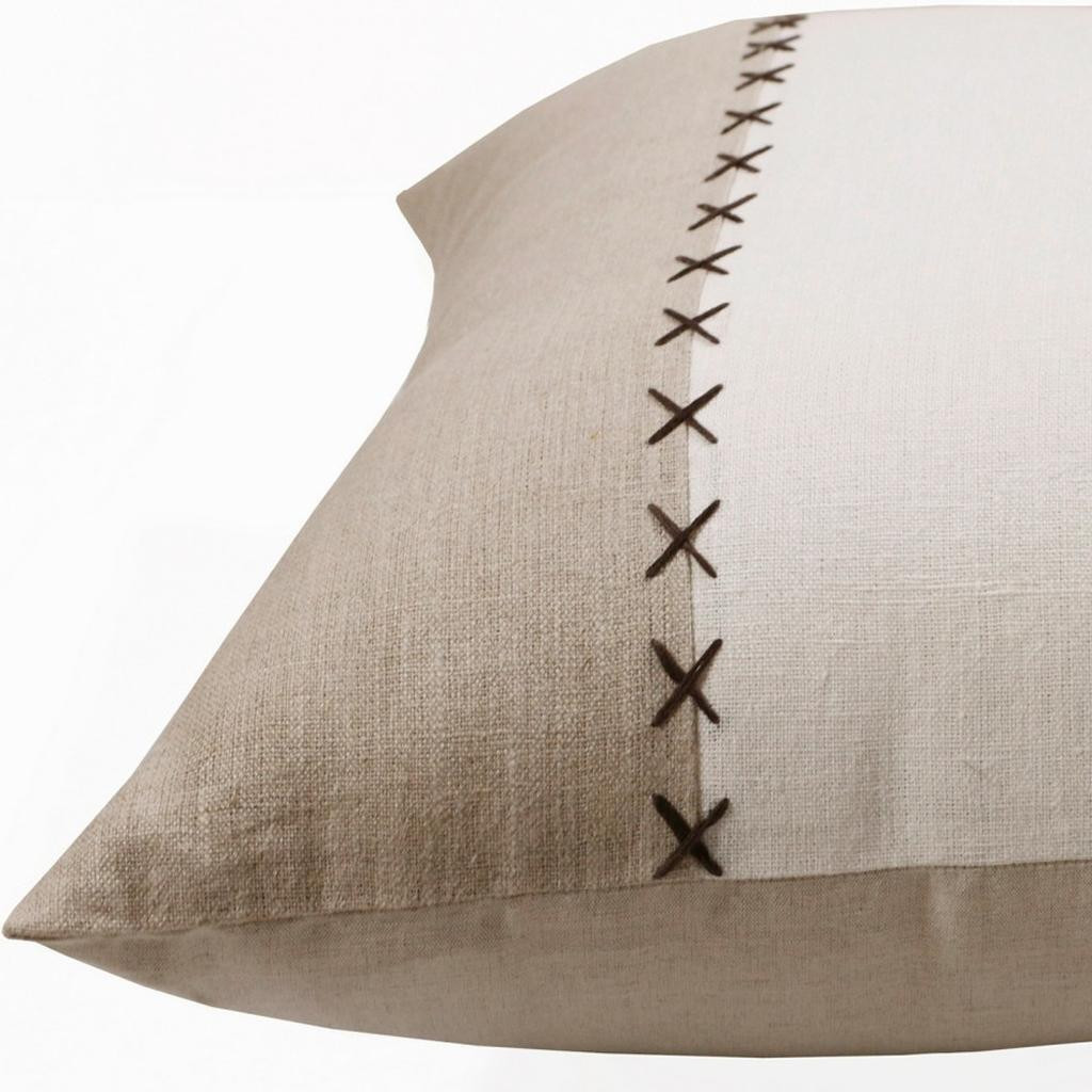 Unique and decorative, this comfortable 20" x 20" gray and tan linen patchwork zippered pillow will leave a lasting impression. This soft and durable decorative pillow is expertly made of high grade, long lasting linen in a gray and tan coloration. Great to use on its own or mix with other decorations for the perfect look. Decorative pillows are a great way to change up the look and feel of your space easily and quickly. 4" H x 20" W x 20" D