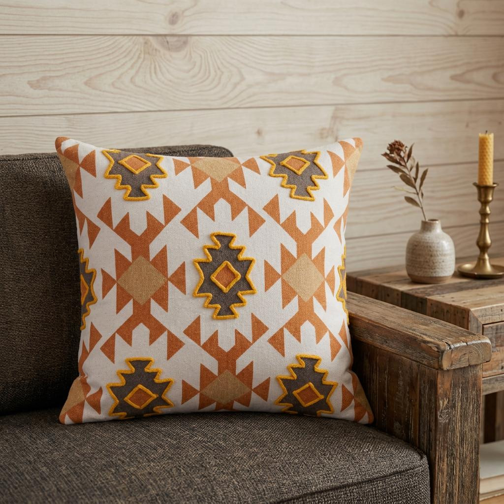 The 20" x 20" orange 100% cotton geometric zippered pillow is the perfect decorative accessory for your home. Soft and textural orange 100% cotton has been used to make this pillow look and feel like a real treasure. Great to use on its own or mix with other decorations for the perfect look. A great decorative accessory for your favorite chair, to accent your sofa, or to use as part of your bed ensemble. 4" H x 20" W x 20" D