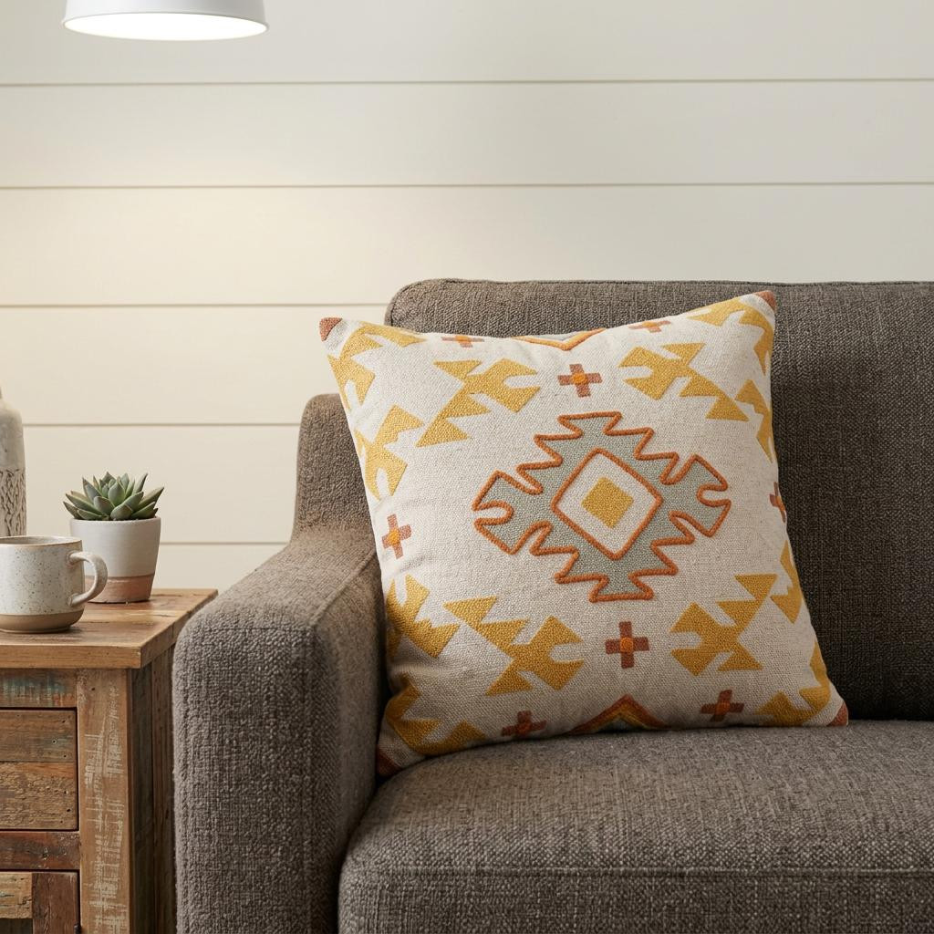 rust cotton geometric throw pillow, cotton geometric throw pillow, geometric throw pillow, yellow rust cotton geometric throw, 20" yellow rust cotton geometric |
