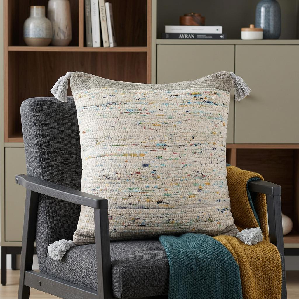 This 20" x 20" gray and off-white 100% cotton abstract zippered pillow will add a beautiful decorative accent to your decor. Soft and textural gray and off-white 100% cotton has been used to make this pillow look and feel like a real treasure. Great to use on its own or mix with other decorations for the perfect look. Decorative pillows are a great way to change up the look and feel of your space easily and quickly. 4" H x 20" W x 20" D