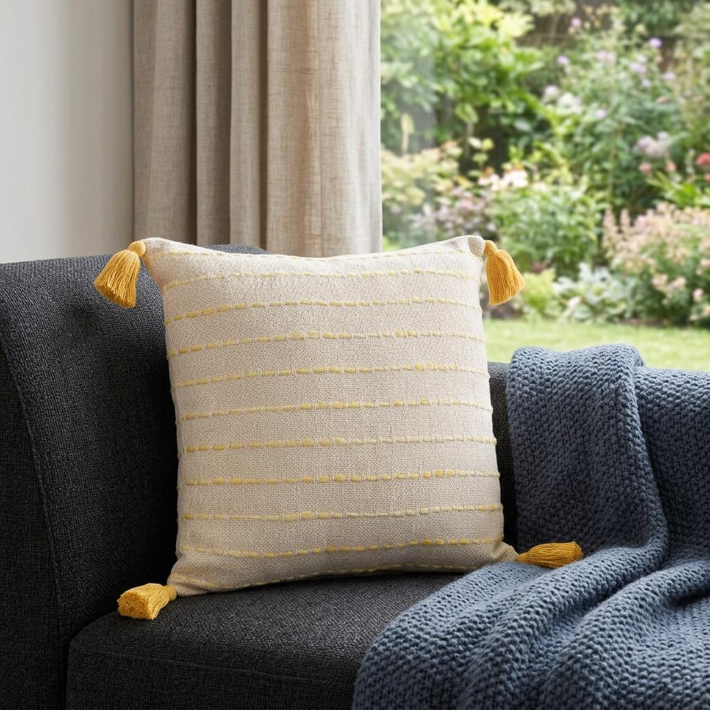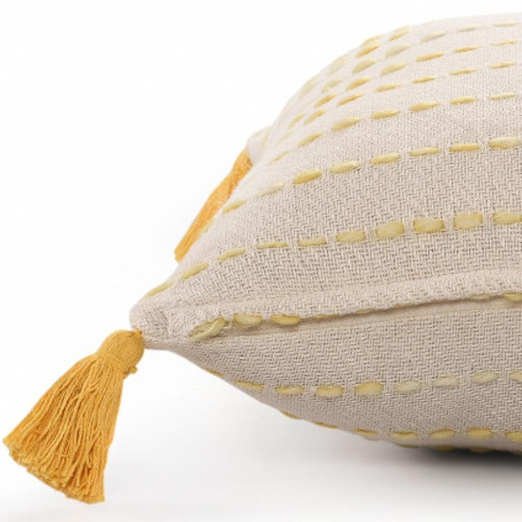 The perfect complement to your sofa, favorite chair, or bed, this 20" x 20" golden yellow and ivory 100% cotton striped zippered pillow is a great decorative accent. The golden yellow and ivory coloring of the soft and long lasting 100% cotton will add dimension and texture to your space. Decorative throw pillows not only add color and dimension to your space but can be comfy and supportive when you are lounging and cuddling as well. Decorative pillows are a great way to change up the look and feel of your space easily and quickly. 4" H x 20" W x 20" D
