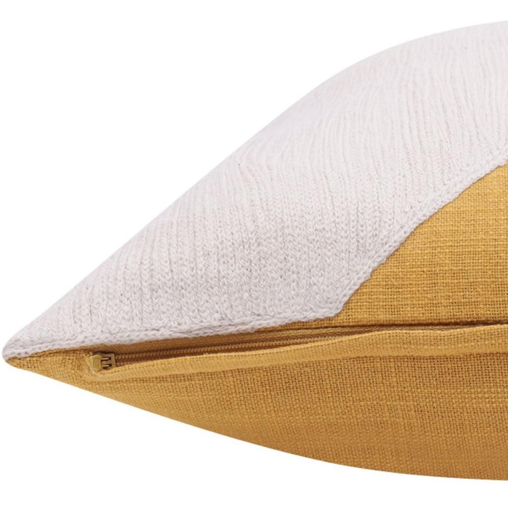 This 24" x 24" yellow and ivory 100% cotton abstract zippered pillow will add a beautiful decorative accent to your decor. This yellow and ivory colored decorative pillow is made from high grade 100% cotton that makes it super soft to the touch and long lasting. Decorative throw pillows not only add color and dimension to your space but can be comfy and supportive when you are lounging and cuddling as well. Decorative pillows are a great way to change up the look and feel of your space easily and quickly. 4" H x 24" W x 24" D